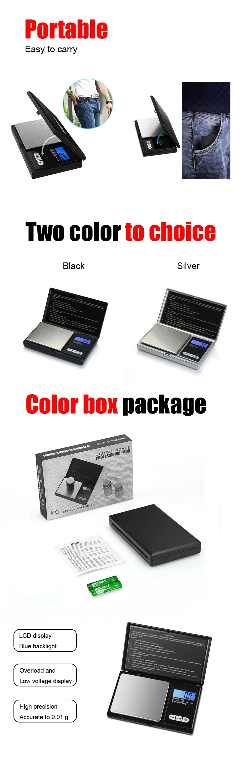 ●Accuracy: 0.01g/0.1g(Note:if The precision is 0.01g, but the minimum measuring weight is 0.05g and if The precision is 0.1g, but the minimum measuring weight is about 0.5g ,it is true of all the digital scales, pls kindly note it)