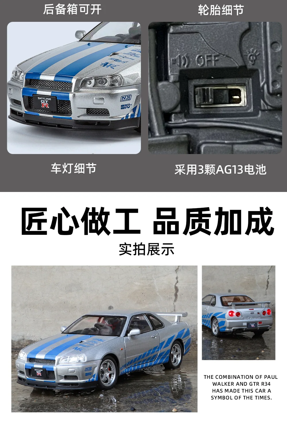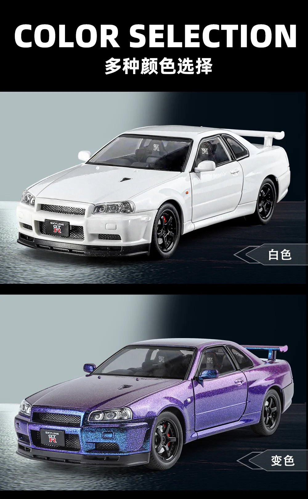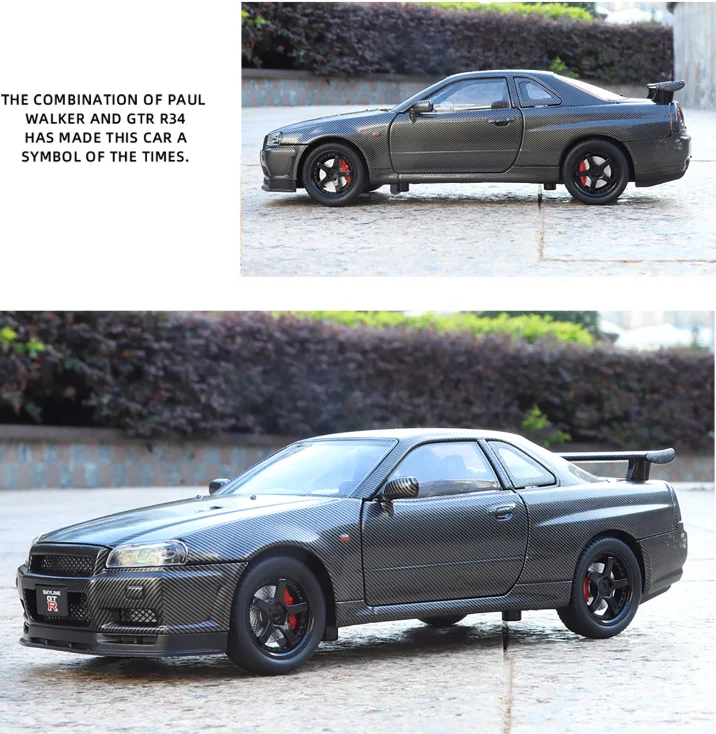 1:24 NISSAN Skyline Ares GTR GT-R R34 Alloy Sports Car Model Diecasts & Toy Racing Vehicles Car Model Sound and Light Kids Gifts