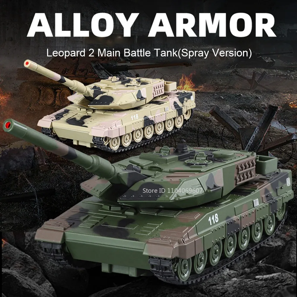 1:32 Tiger Leopard 2 T-90 M4 Spray Tank Model Toys Metal Diecast Military Vehicles Sound Light Pull Back Doors Opened Boys Gifts