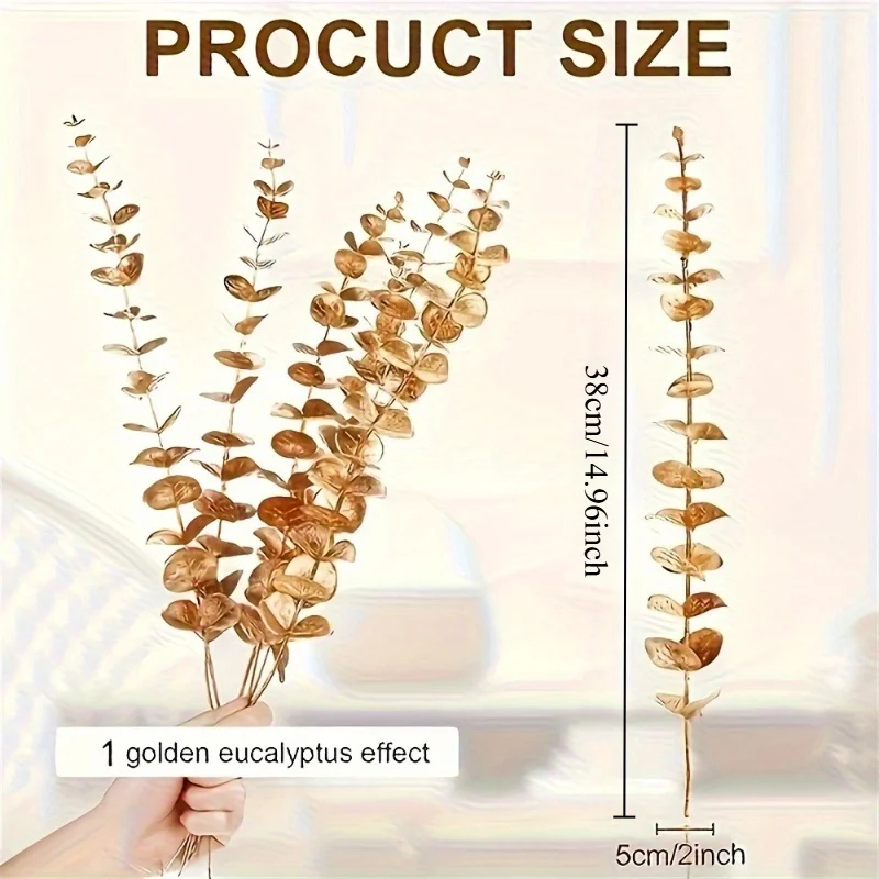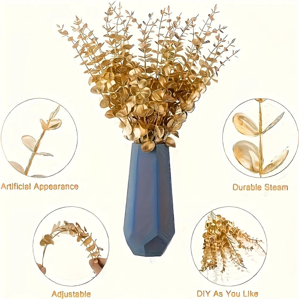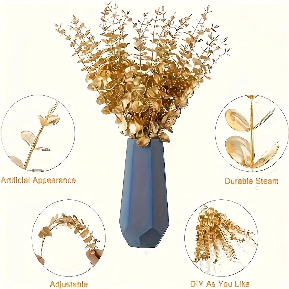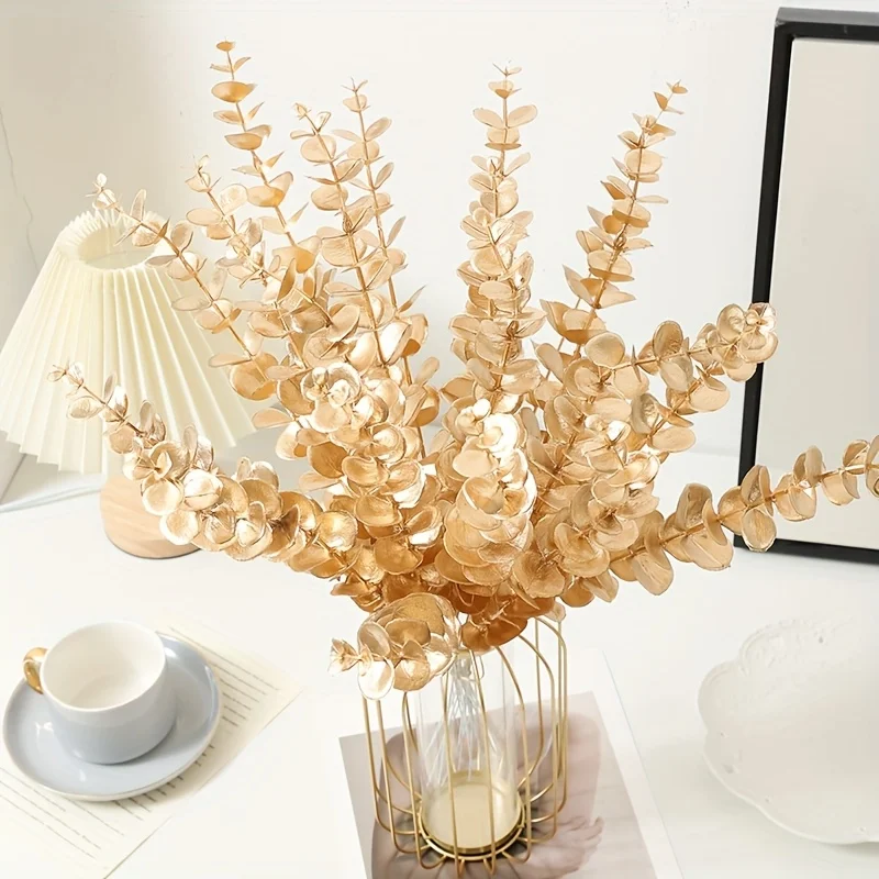 10/20pcs Golden Eucalyptus Artificial Flowers Christmas Home Decor Weddings Birthdays Office Desk Decoration Artificial Plants