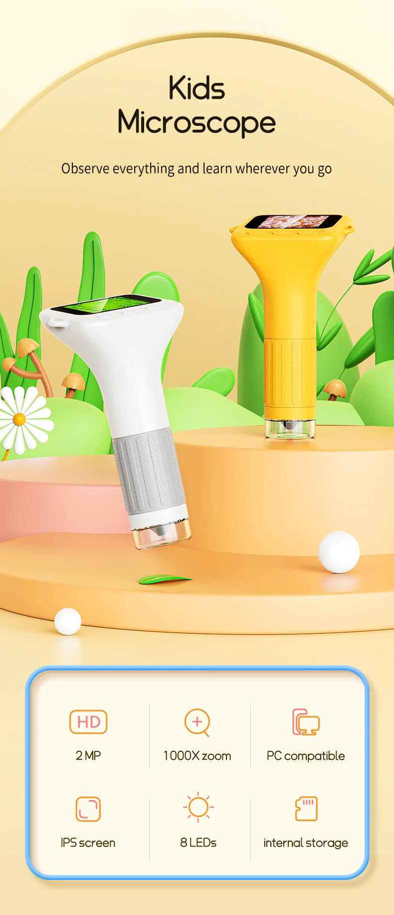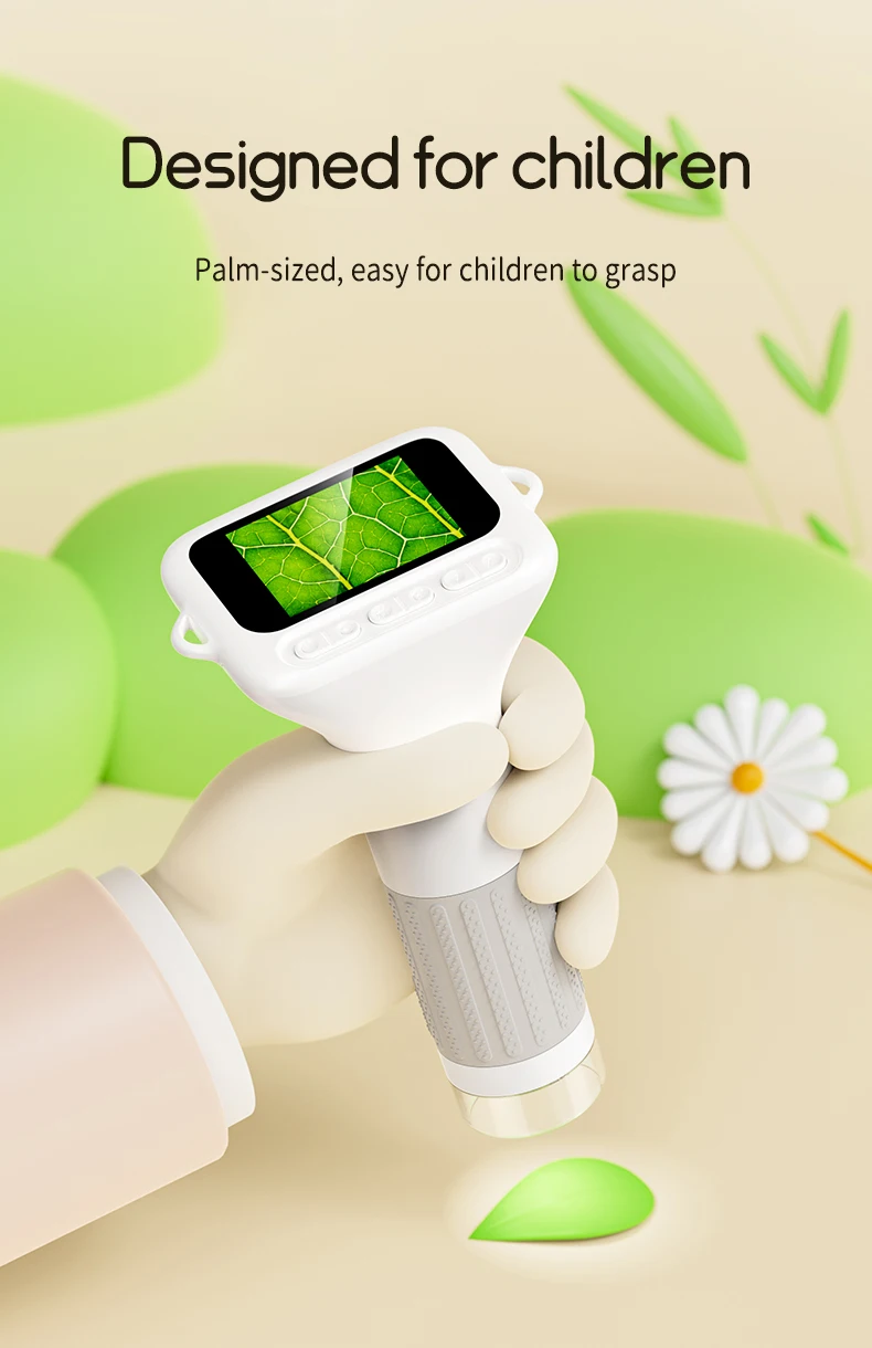 🌿 Portable & Kid-Friendly Design – Lightweight and ergonomically designed for small hands (ages 3-12), this microscope comes with a removable screen decoration and a 50 cm hanging rope, making outdoor adventures and classroom discoveries effortless.