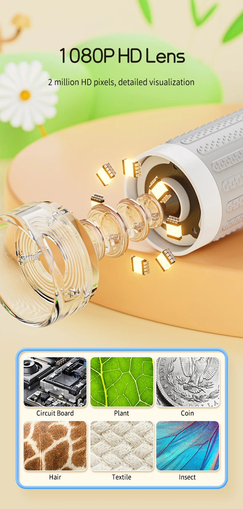 📸 Capture & Share Your Discoveries – More than just a microscope! Take photos and record videos, storing up to 200 images directly on the device. Perfect for tracking plant growth, documenting experiments, or sharing findings with family and teachers.