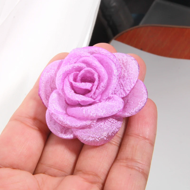 10Pcs 5cm Chiffon Rose Artificial Flowers Yarn Fabric Flowers For Headwear Dress Wedding Bouquet Decor Craft Flower Accessories