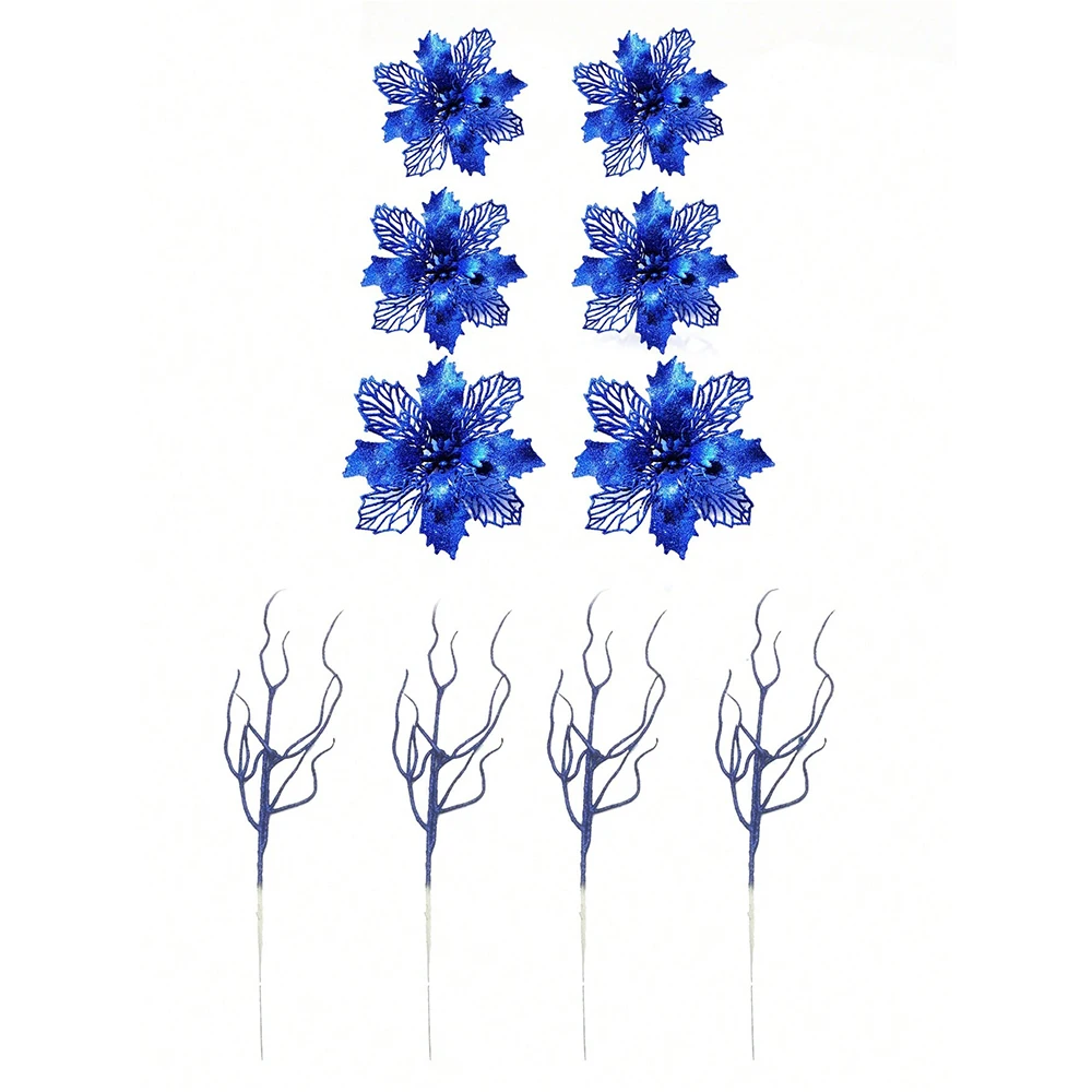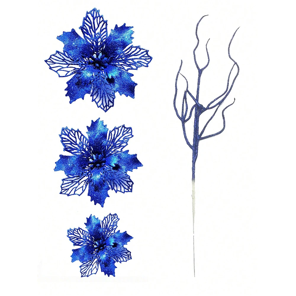 10Pcs Blue Artificial Flowers Branch Fake Plant Christmas Tree Decoration for Xmas Garland Ornament Home Decor 2026 Accessories