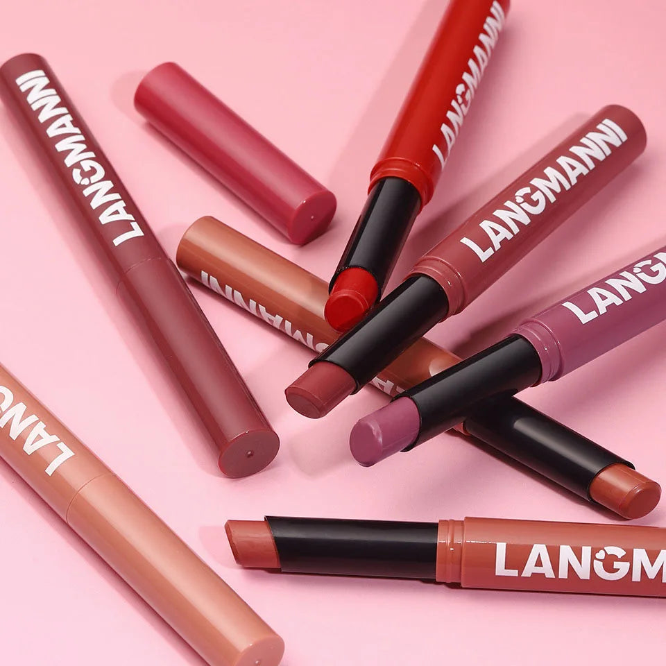 12 Color Nude Lipstick Pen Matte Lipstick Pencil Lip Stain Tint Cosmetic Waterproof Long Lasting Non-Stick Makeup Maquillage