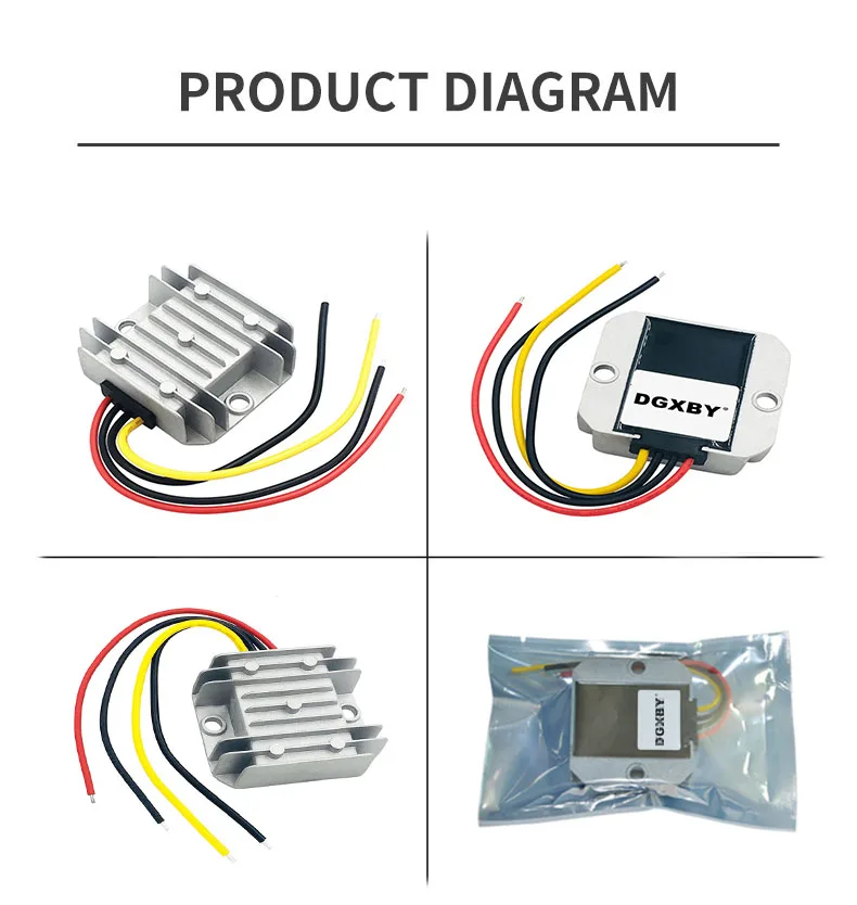 Wiring method: input red wire positive, black wire negative, black wire negative, yellow wire output positive. The input has no reverse polarity protection, please pay attention to wiring.