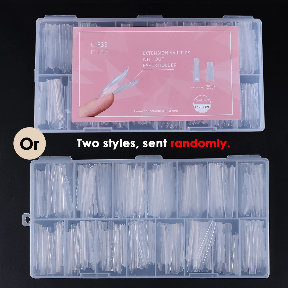 180pcs/Box New Sandwich Nail Extension Mold Interlayer Dual Nail Forms Easy To Shape Oval/Long Coffin Mixed 15 Sizes Quick Prolong Tools Acrylic Manicure Set