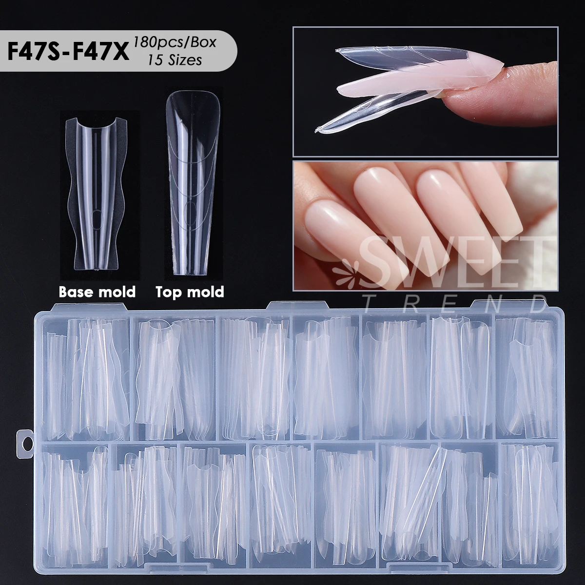 180pcs New Sandwich Nail Extension Mold Interlayer Dual Nail Forms Easy To Shape Oval/Coffin Mixed 15 Size Prolong Tool Manicure