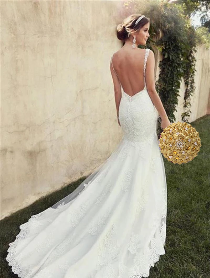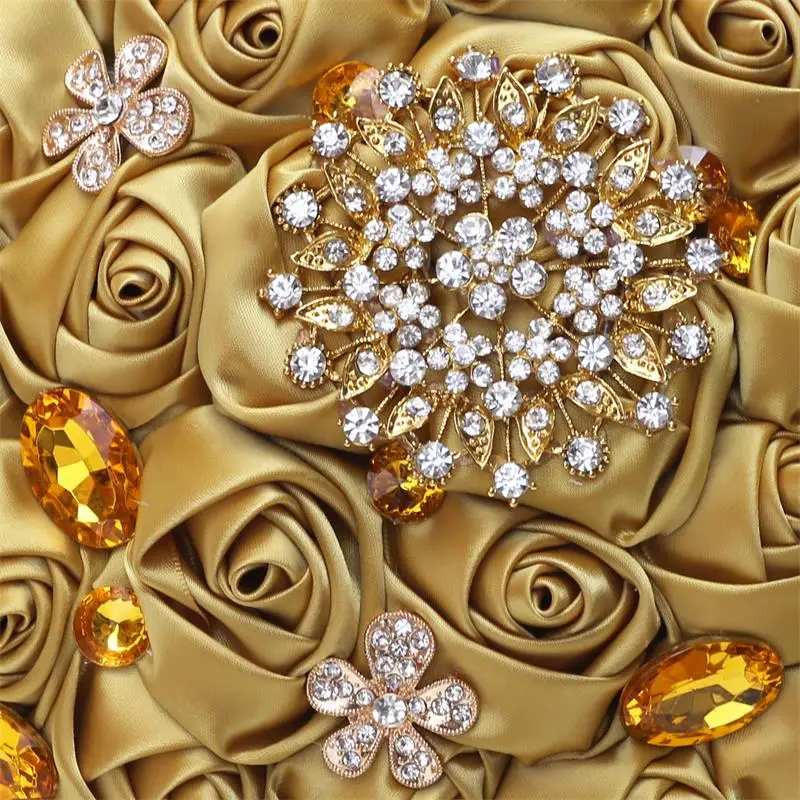 1pc/lot Gold Bridal Wedding Bouquet Satin Rose Artificial Flowers Wedding Bouquet de novia On Sale