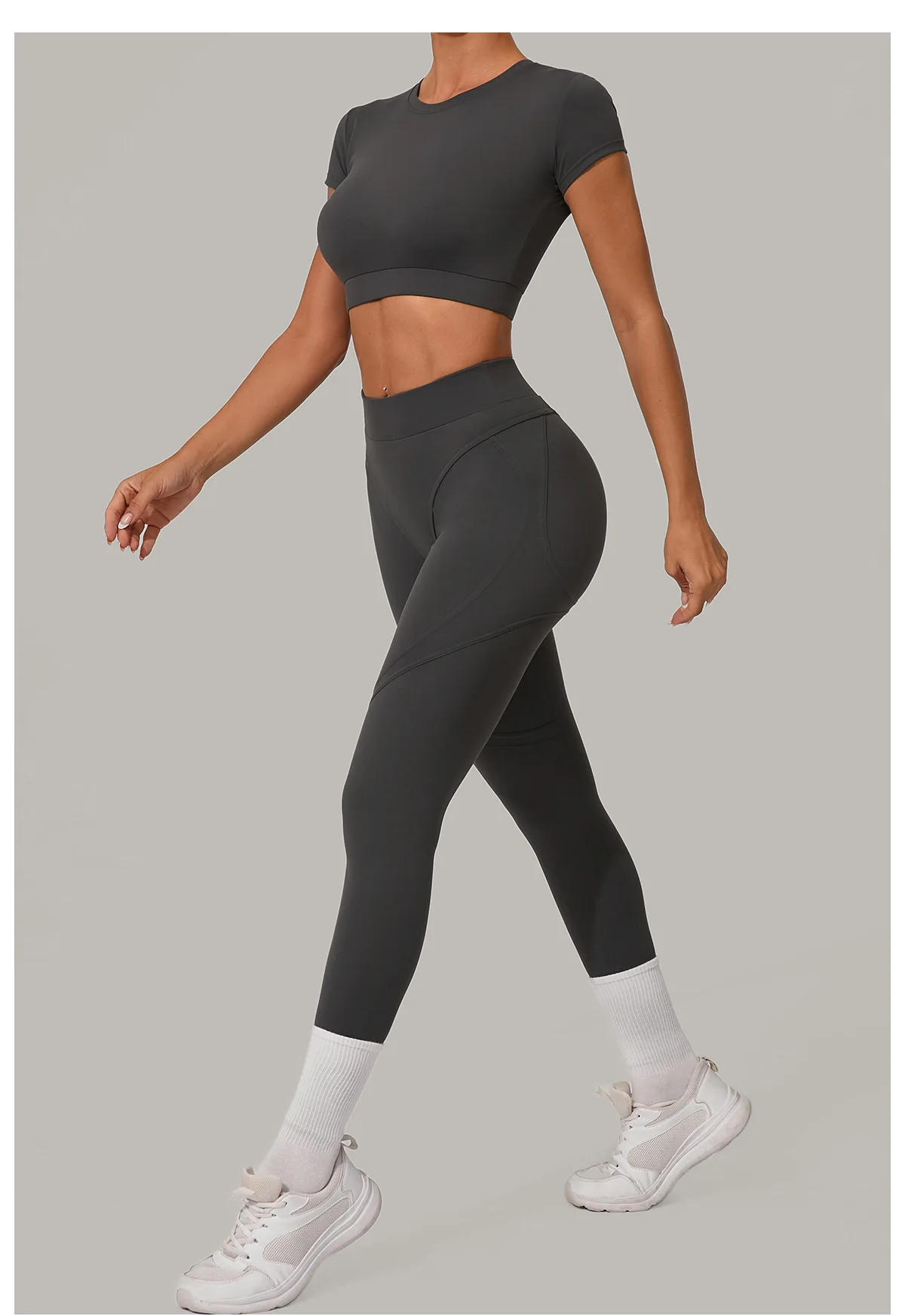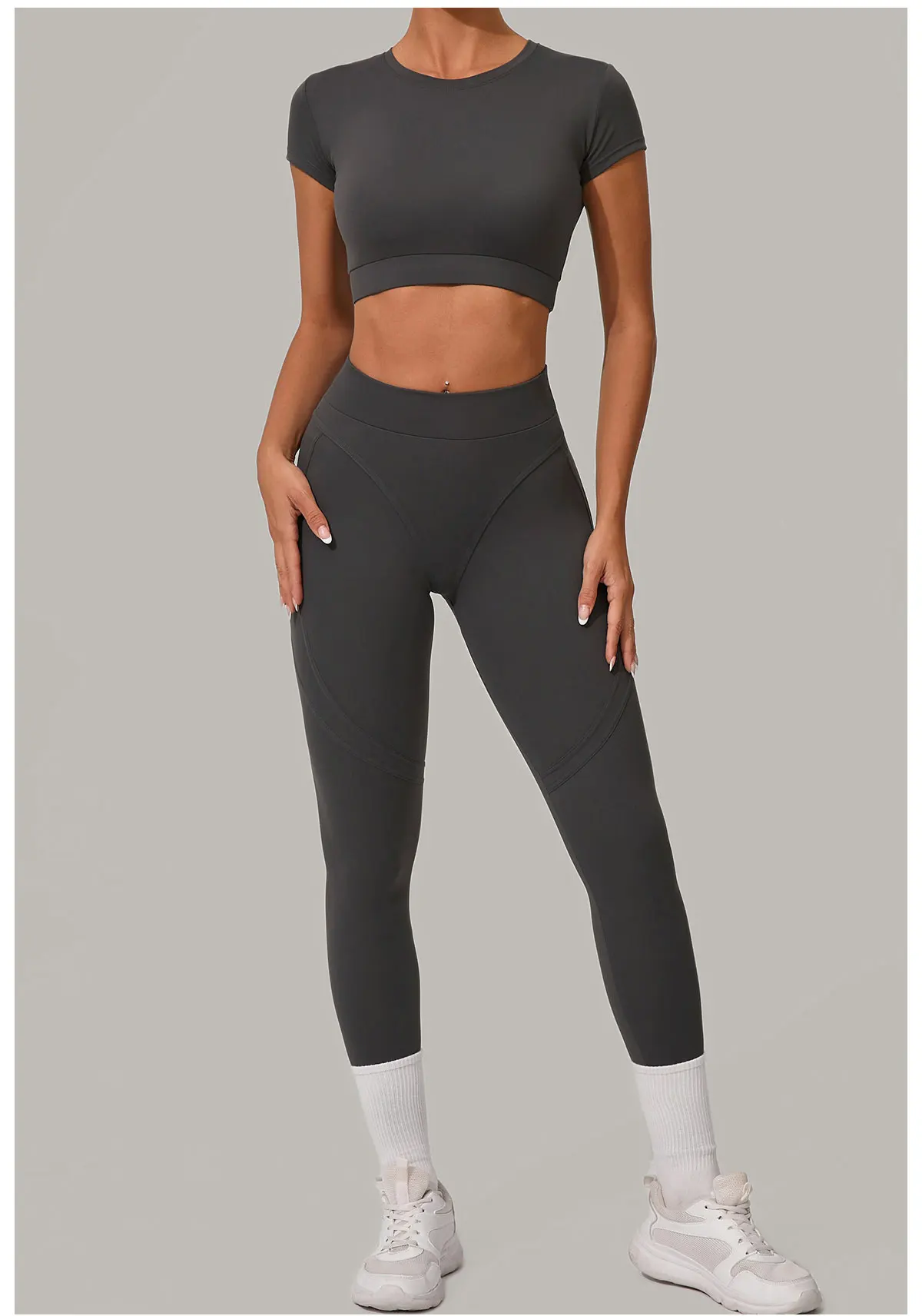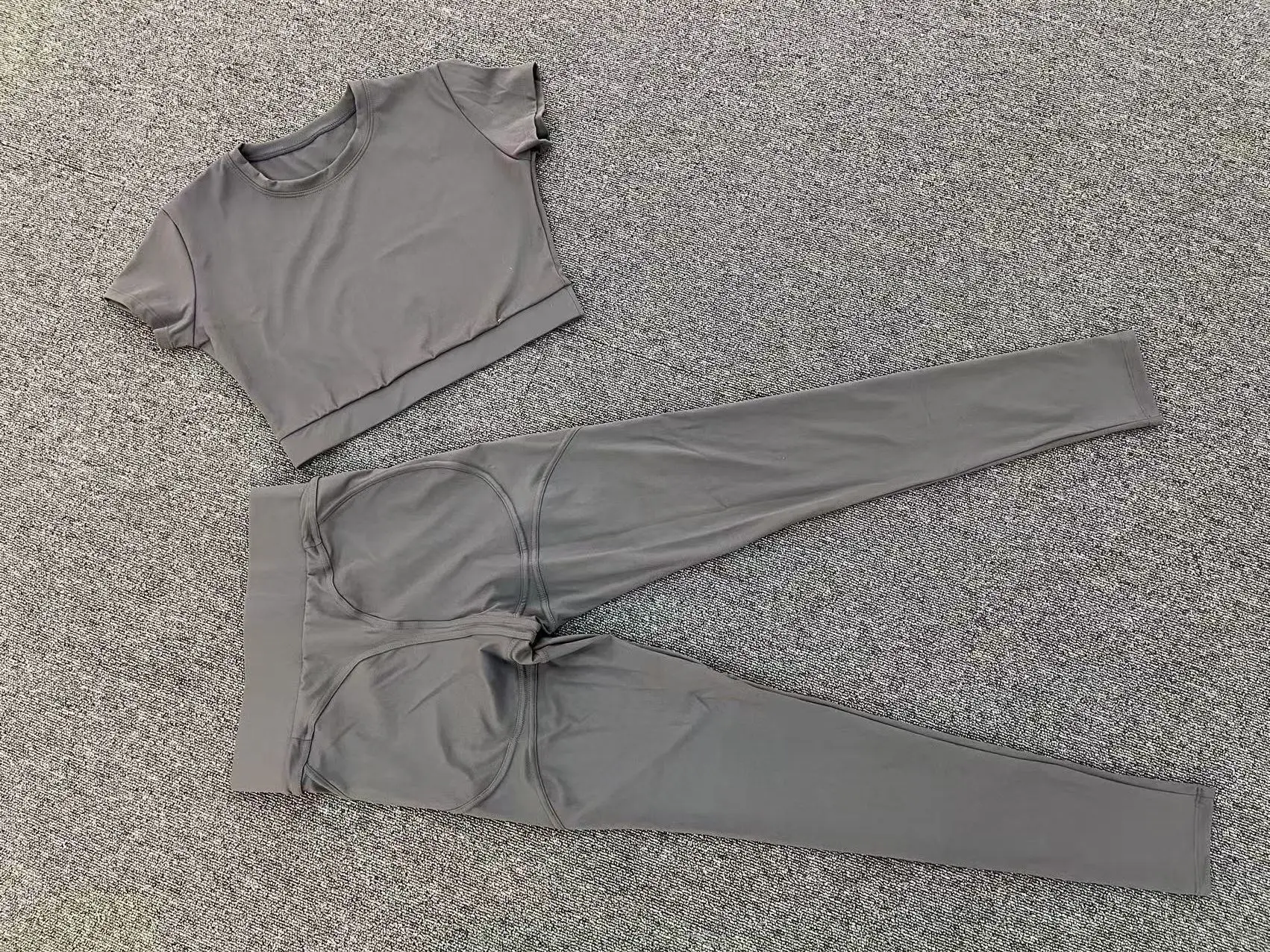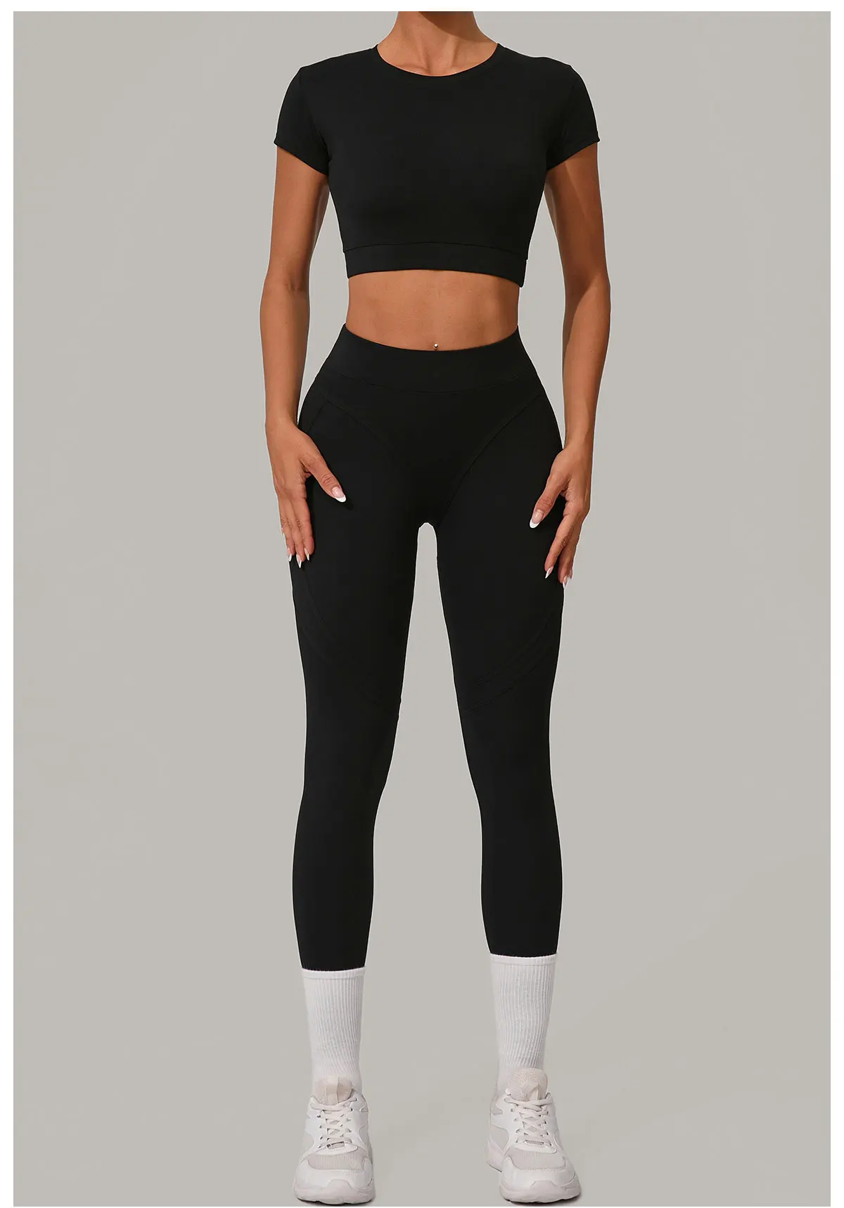 2 Pieces Sportswear Women Yoga Set Gym Clothes Sportswear Yoga Suits Fitness Set Tracksuits Sports Short Sleeves Gym Leggings