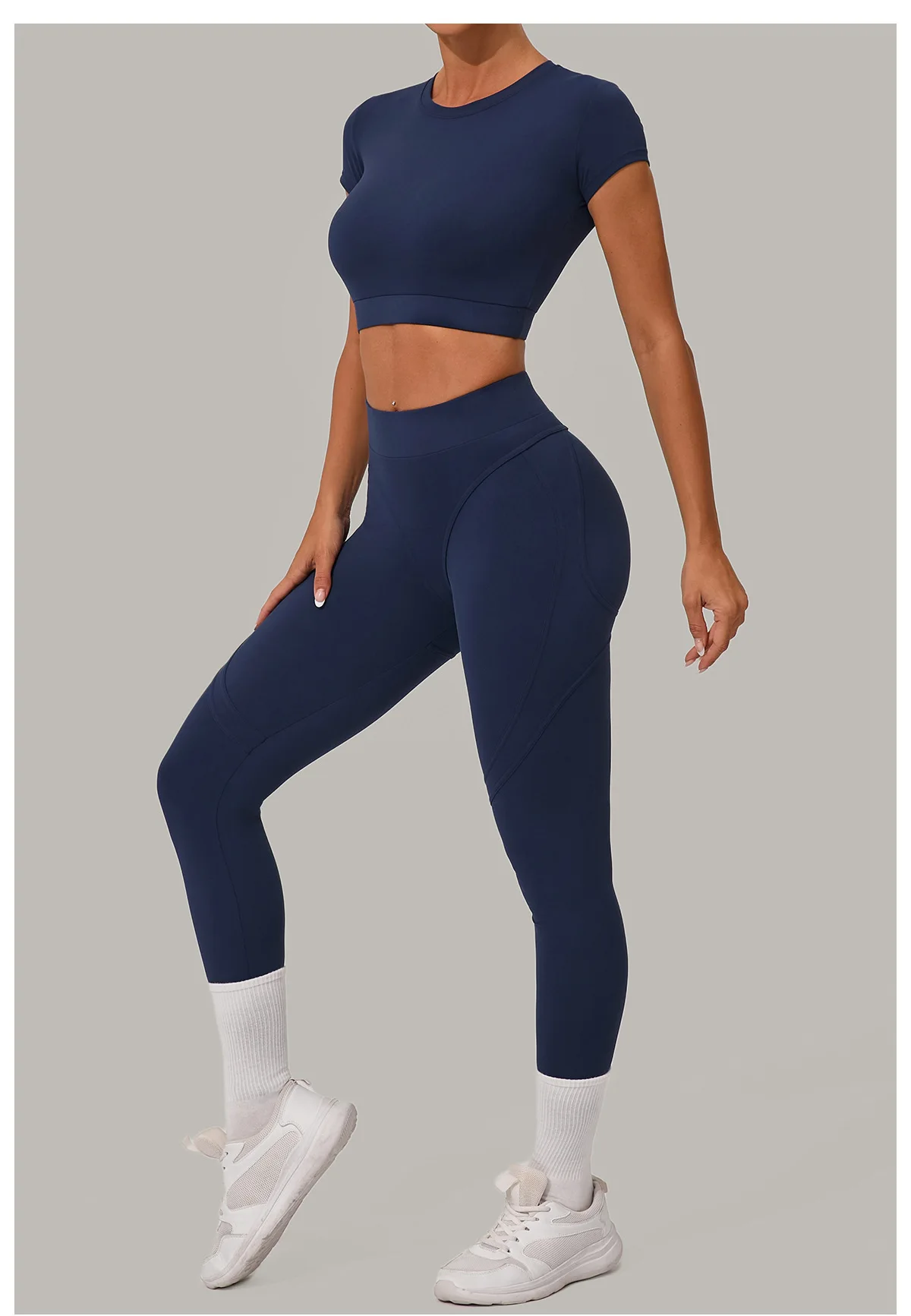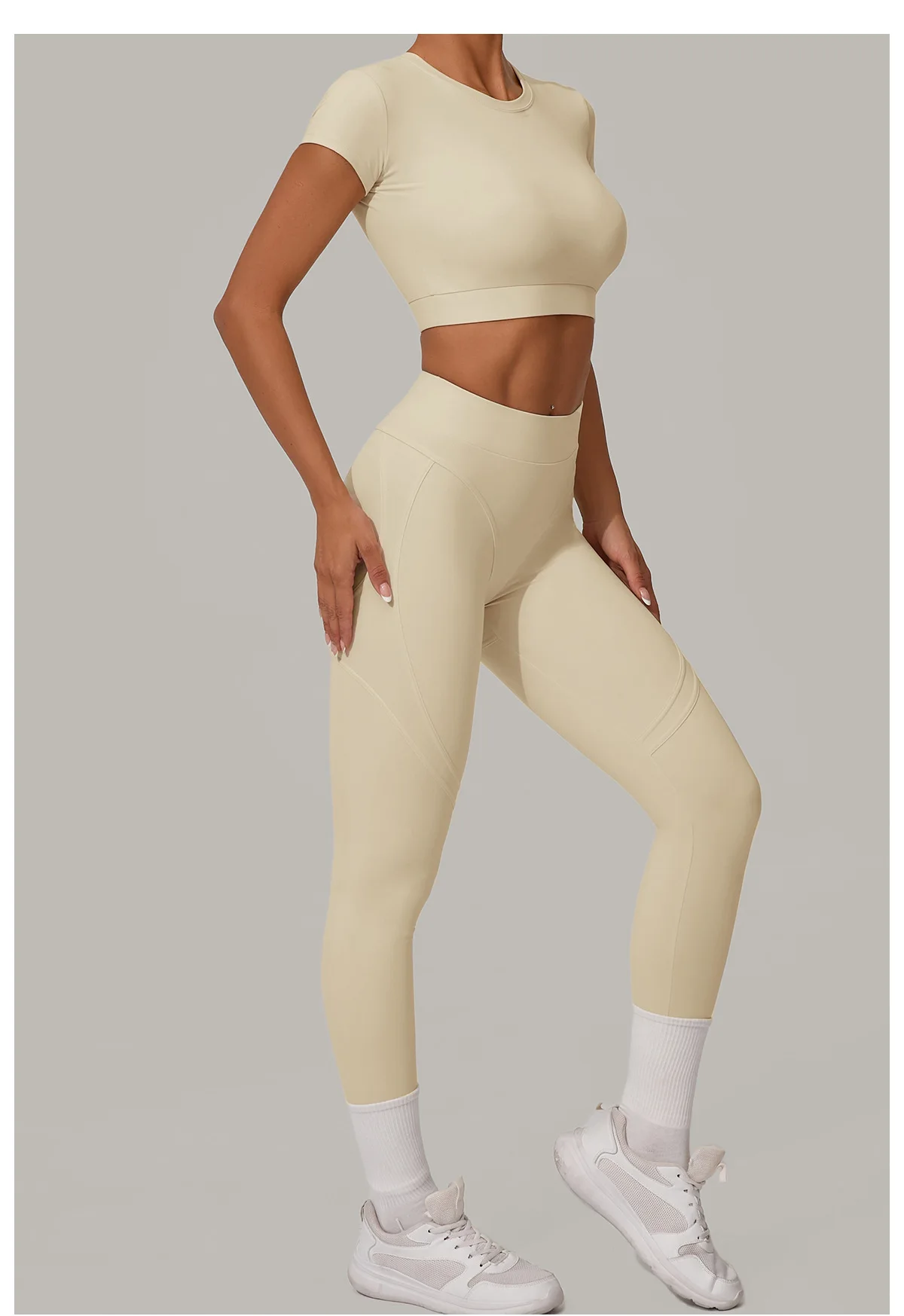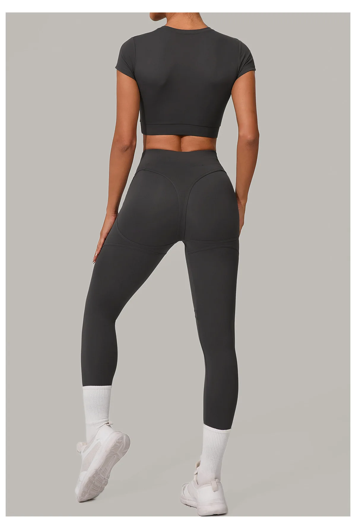2 Pieces Sportswear Women Yoga Set Gym Clothes Sportswear Yoga Suits Fitness Set Tracksuits Sports Short Sleeves Gym Leggings