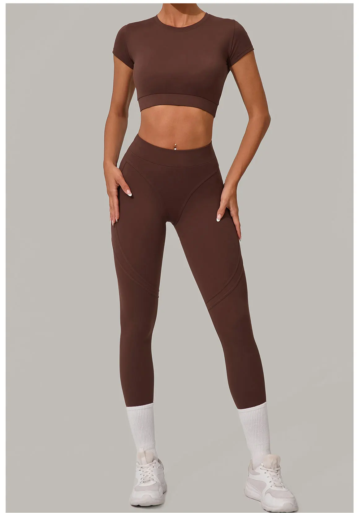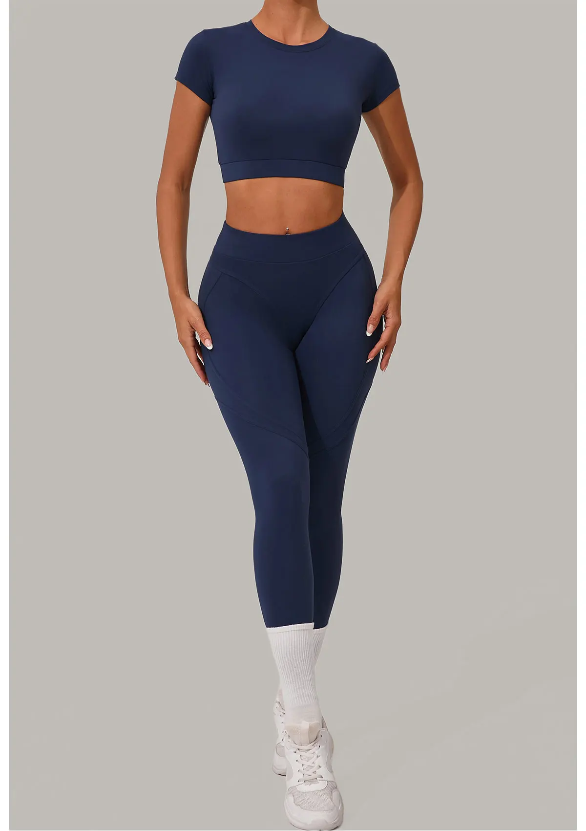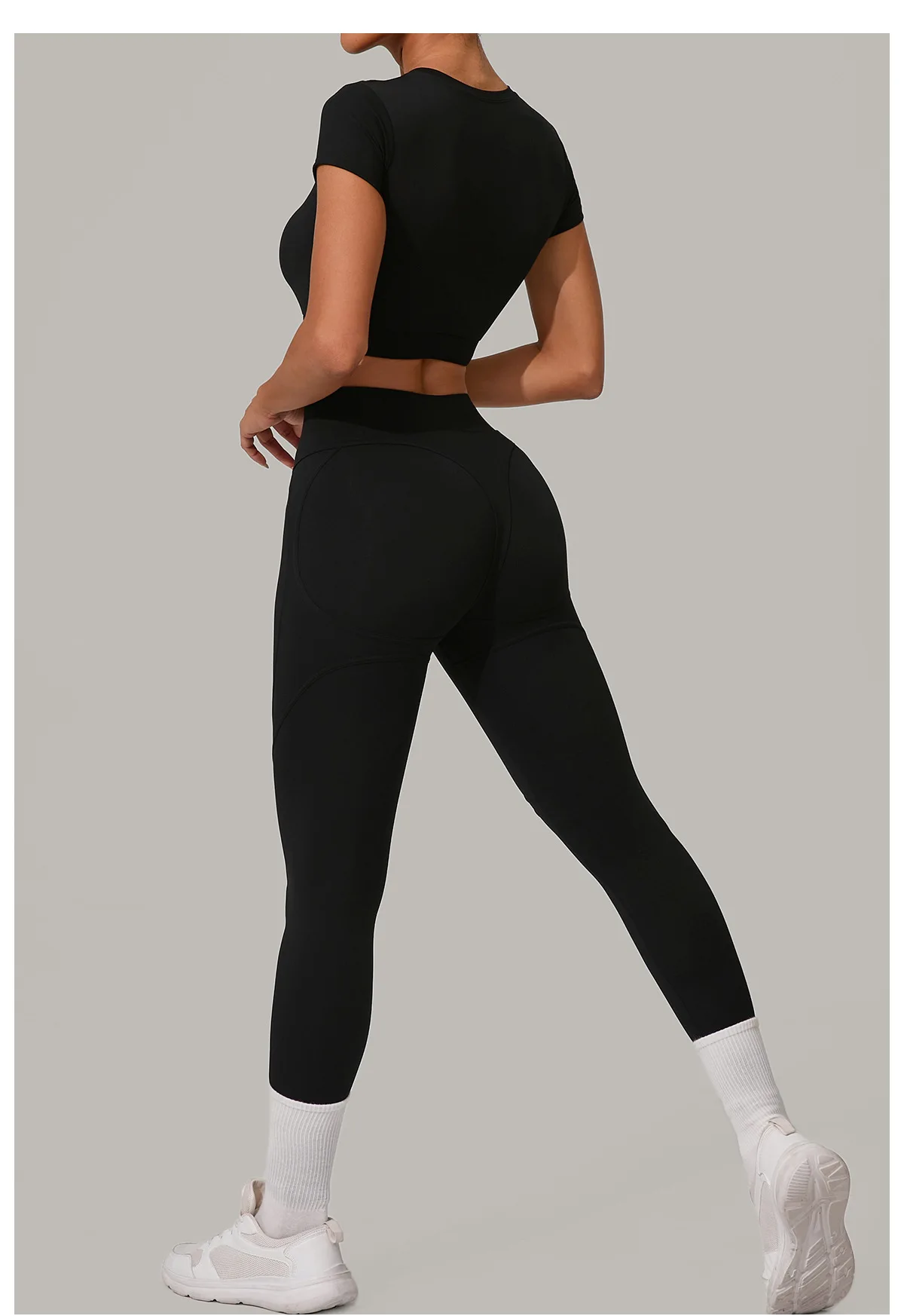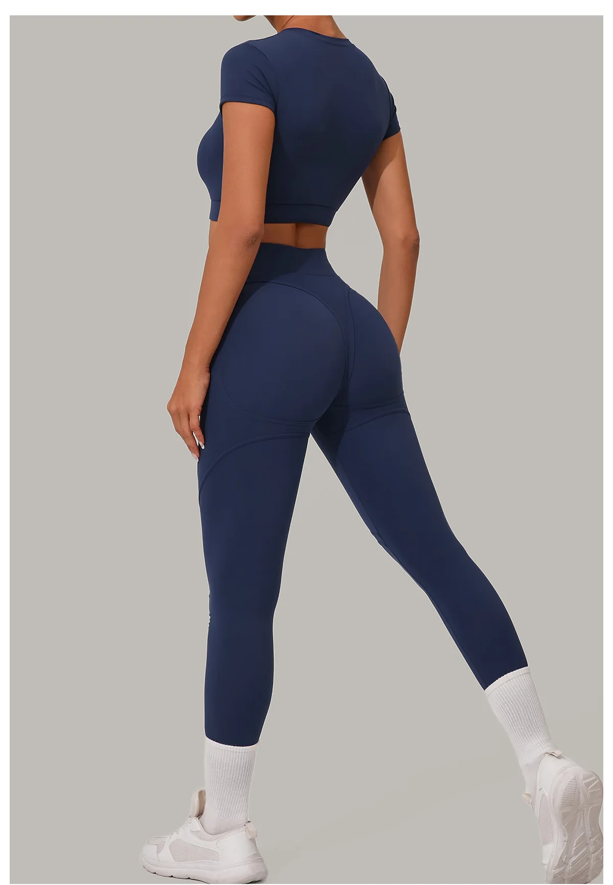 2 Pieces Sportswear Women Yoga Set Gym Clothes Sportswear Yoga Suits Fitness Set Tracksuits Sports Short Sleeves Gym Leggings