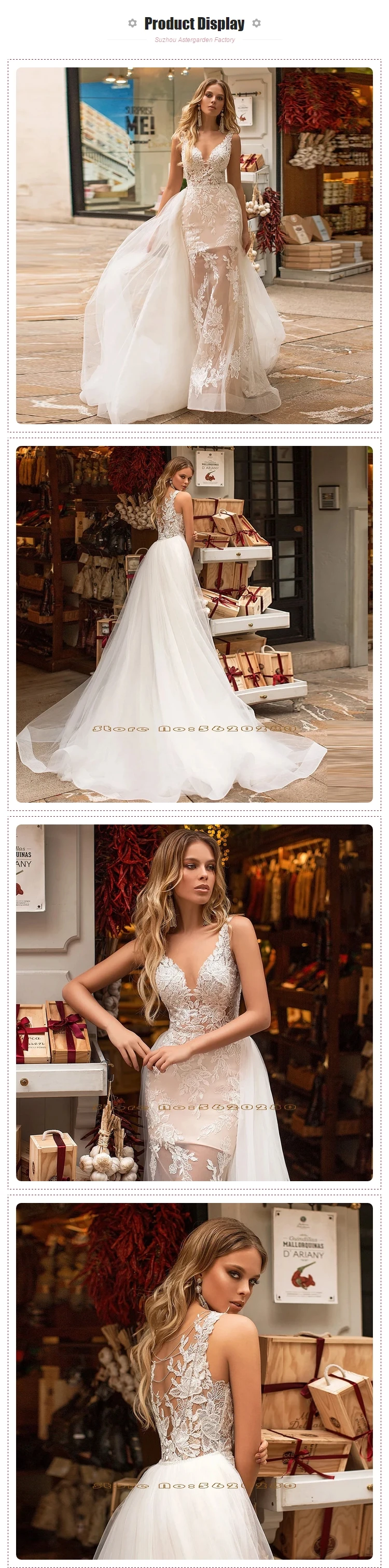 2021 Sexy See Through Mermaid Wedding Dresses With Detachable Train Vestido De Noiva 2 Em 1 Beading Back Appliques 2 In 1 Gowns