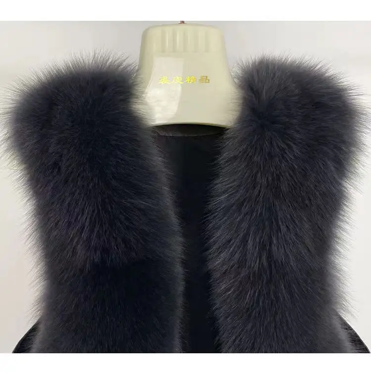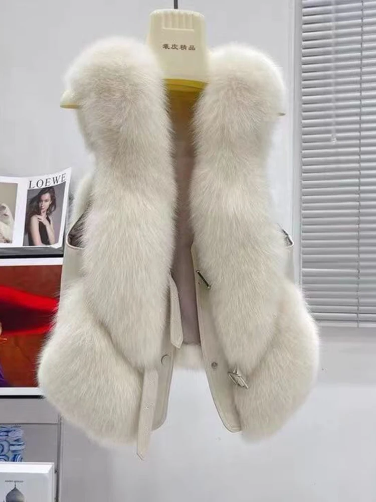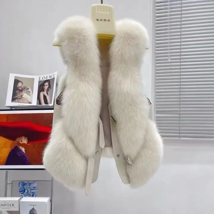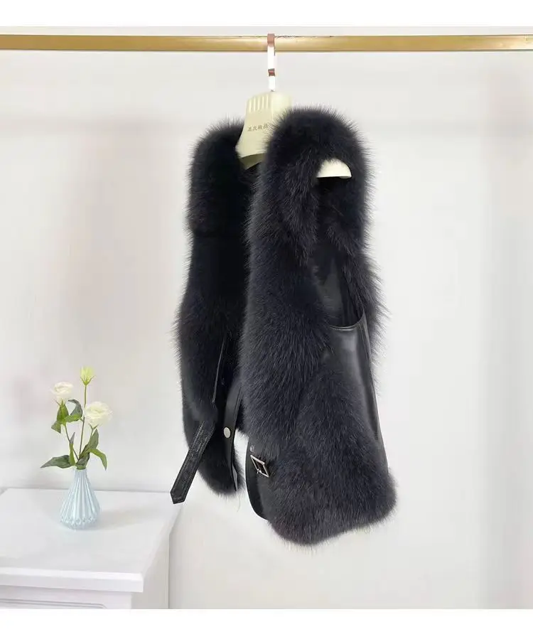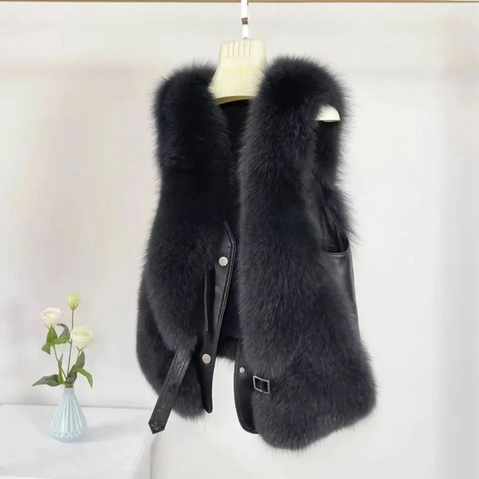 2024 autumn and winter fur vest short spliced leather, new style with shoulder collar and gold short sobretudo feminino