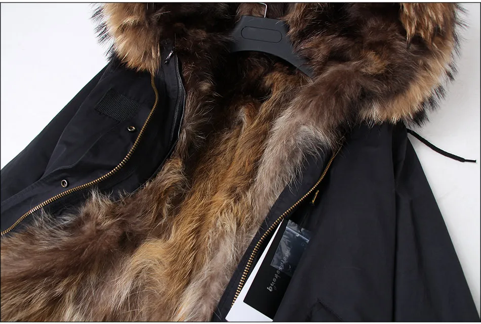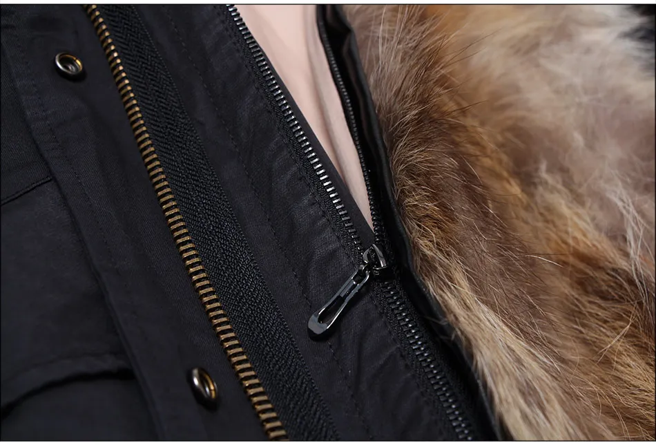 2024 MAOMAOKONG Natural Raccoon Fur Collar Winter Coat Remove Liner Slim Jacket Fur Coat Woman Parkas Female Clothes