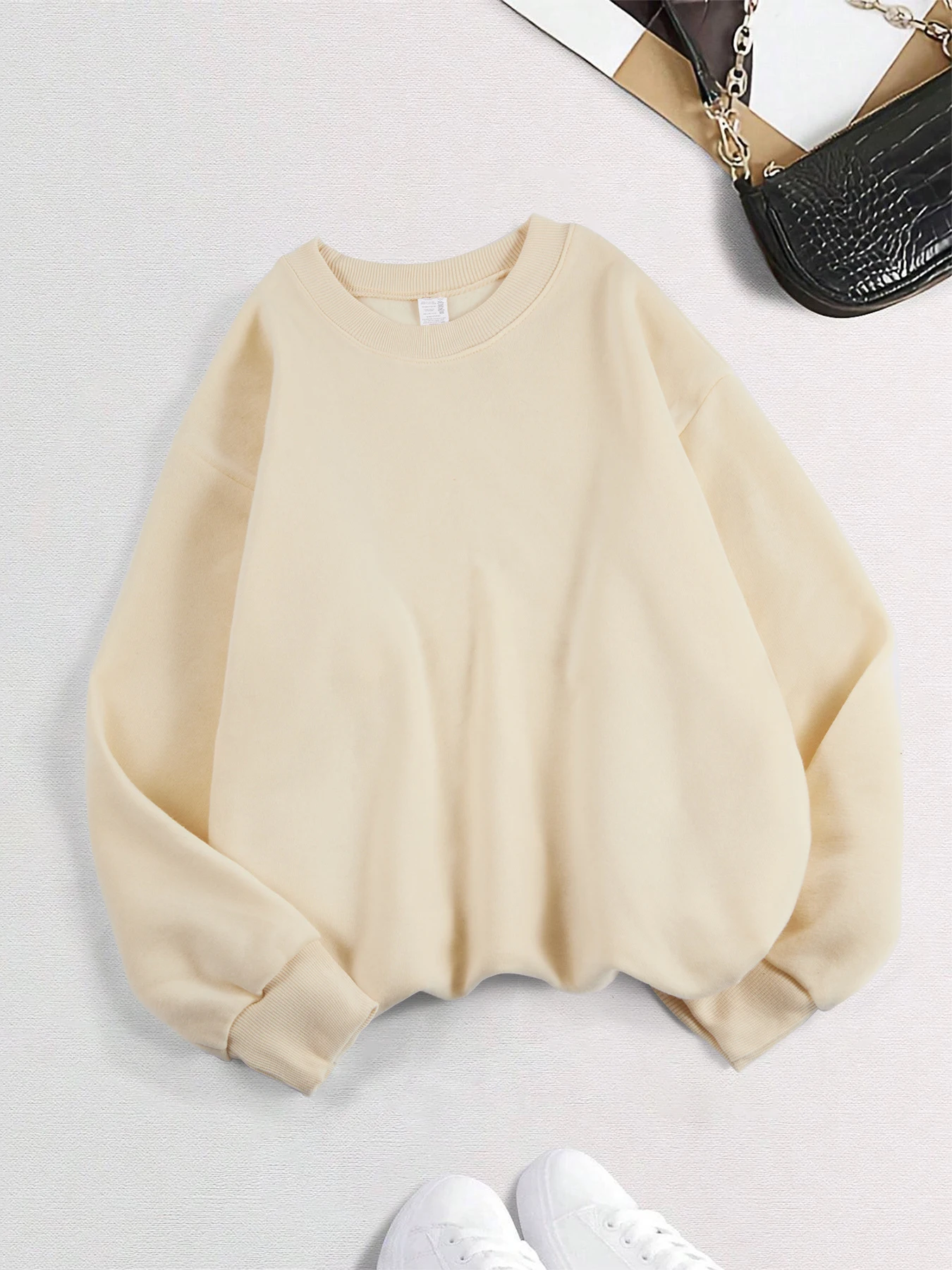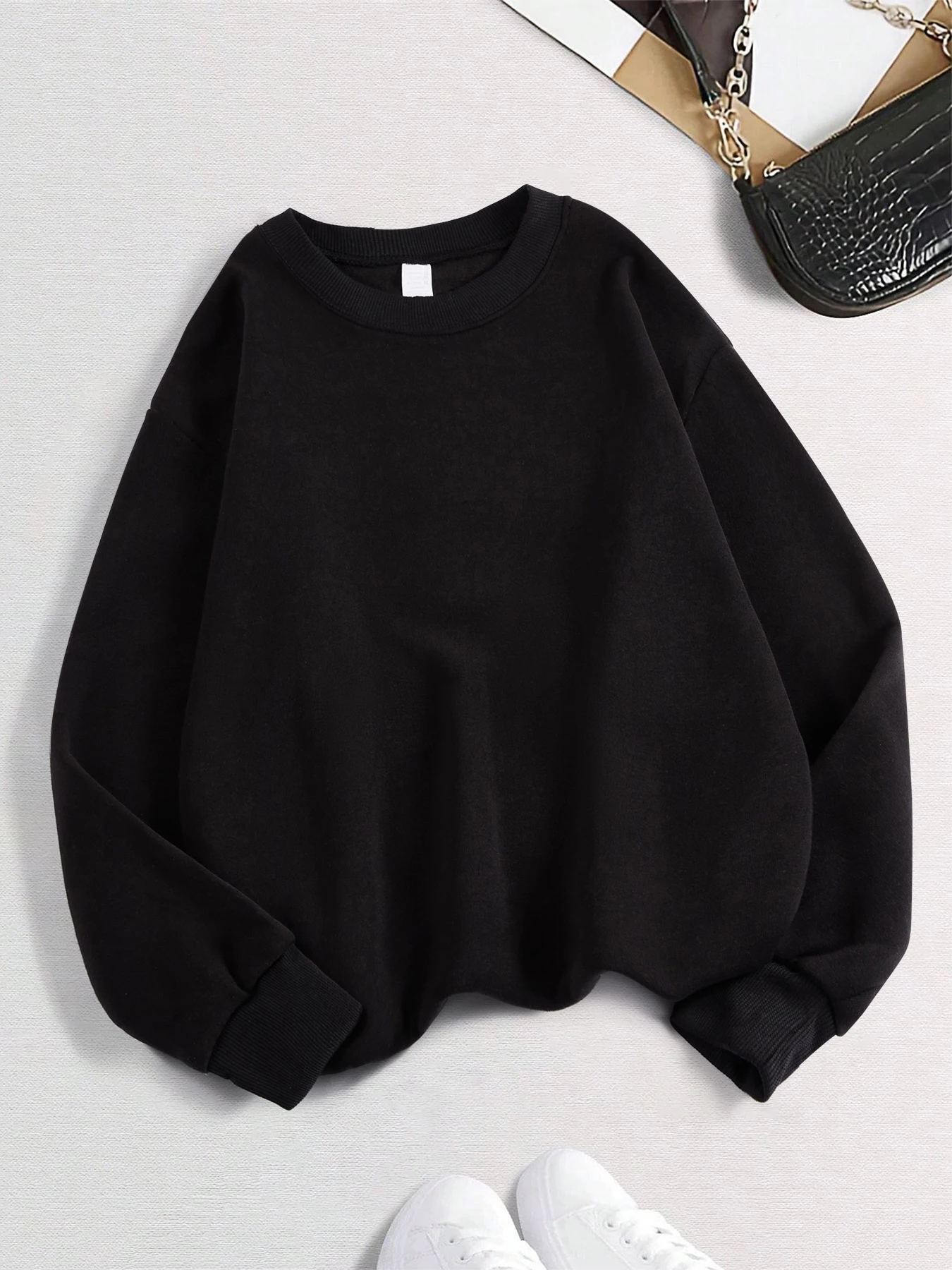 2026 Winter Womens Solid Hoodies Basic Warm Fleece Sweatshirt Soft Breathable O-Neck Pullover Casual Oversize Female Clothes