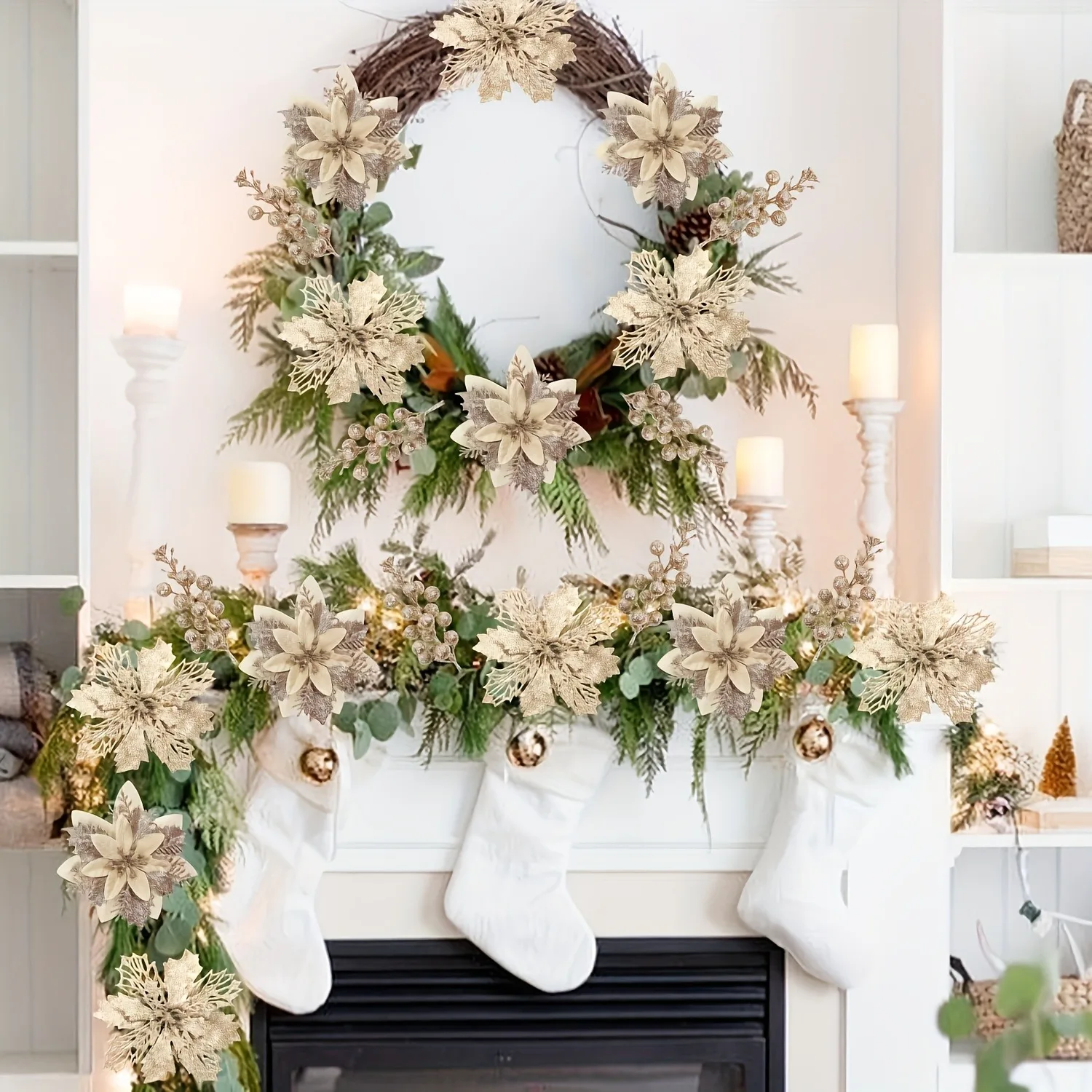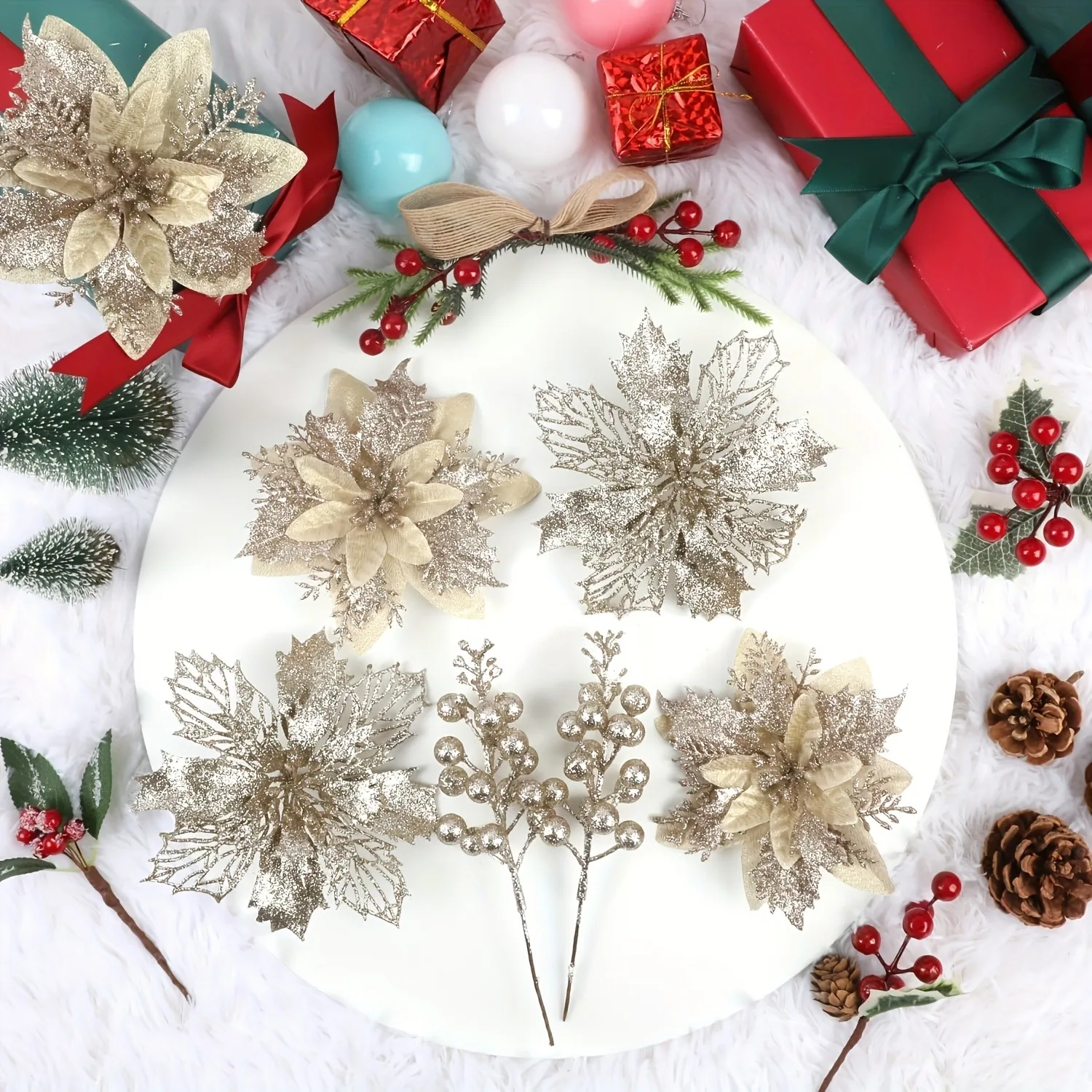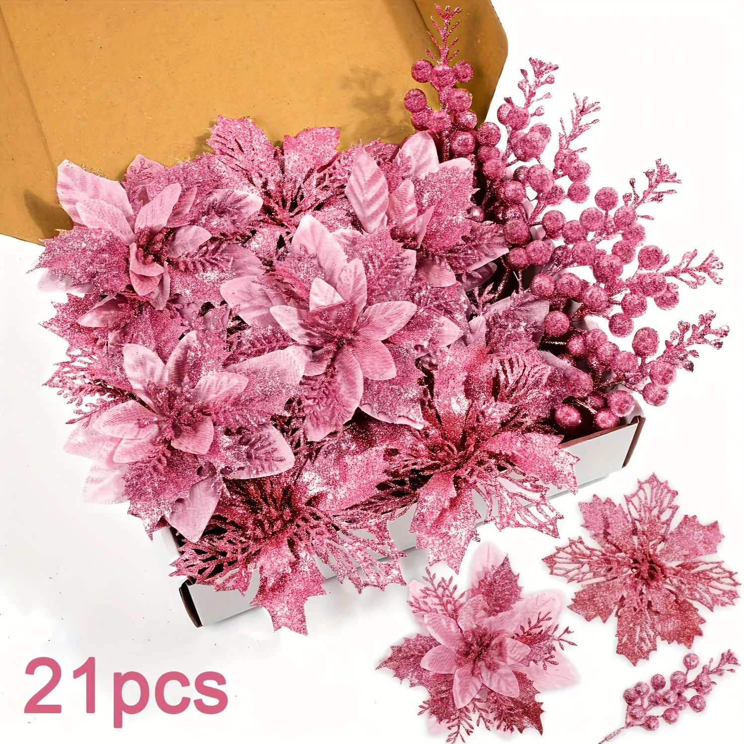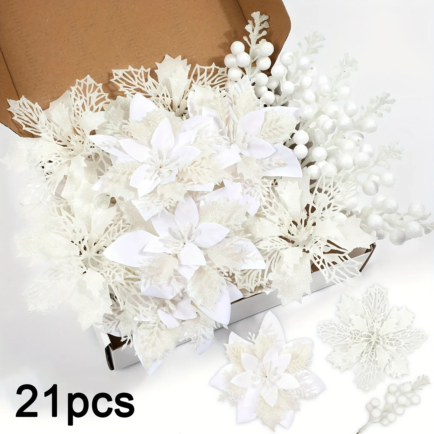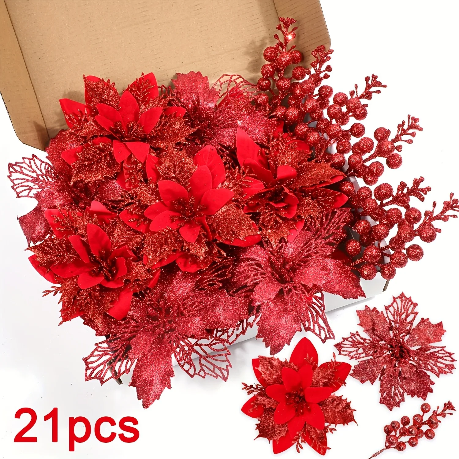 21Pcs Artificial Flowers Berry Bouquet Christmas Decoration Vase for Home Room Decor Fake Flowers Garland Ornament Accessories