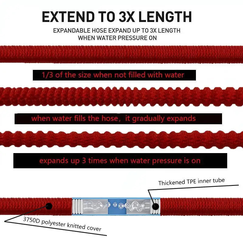 25-100FT Expandable HighPressure Magic Hose Flexible Water Pipe HighPressure Multifunctional Spray Gun Home Garden Watering Tool
