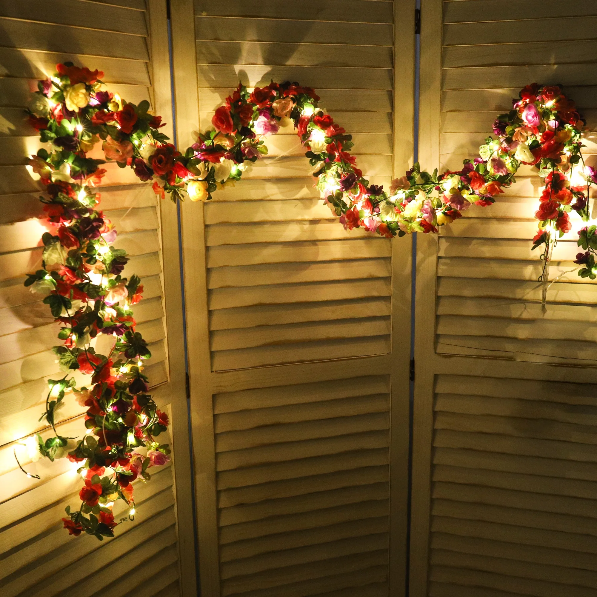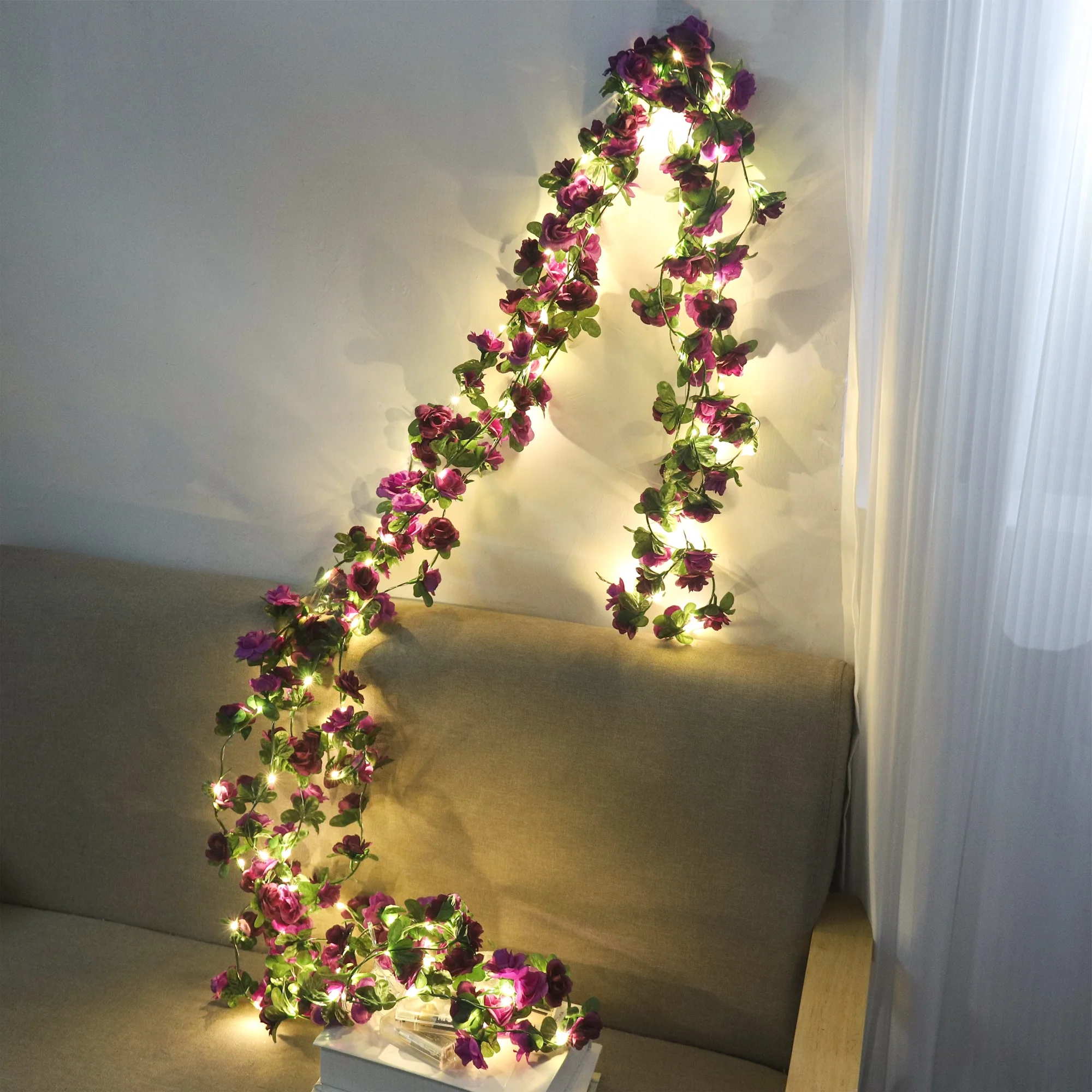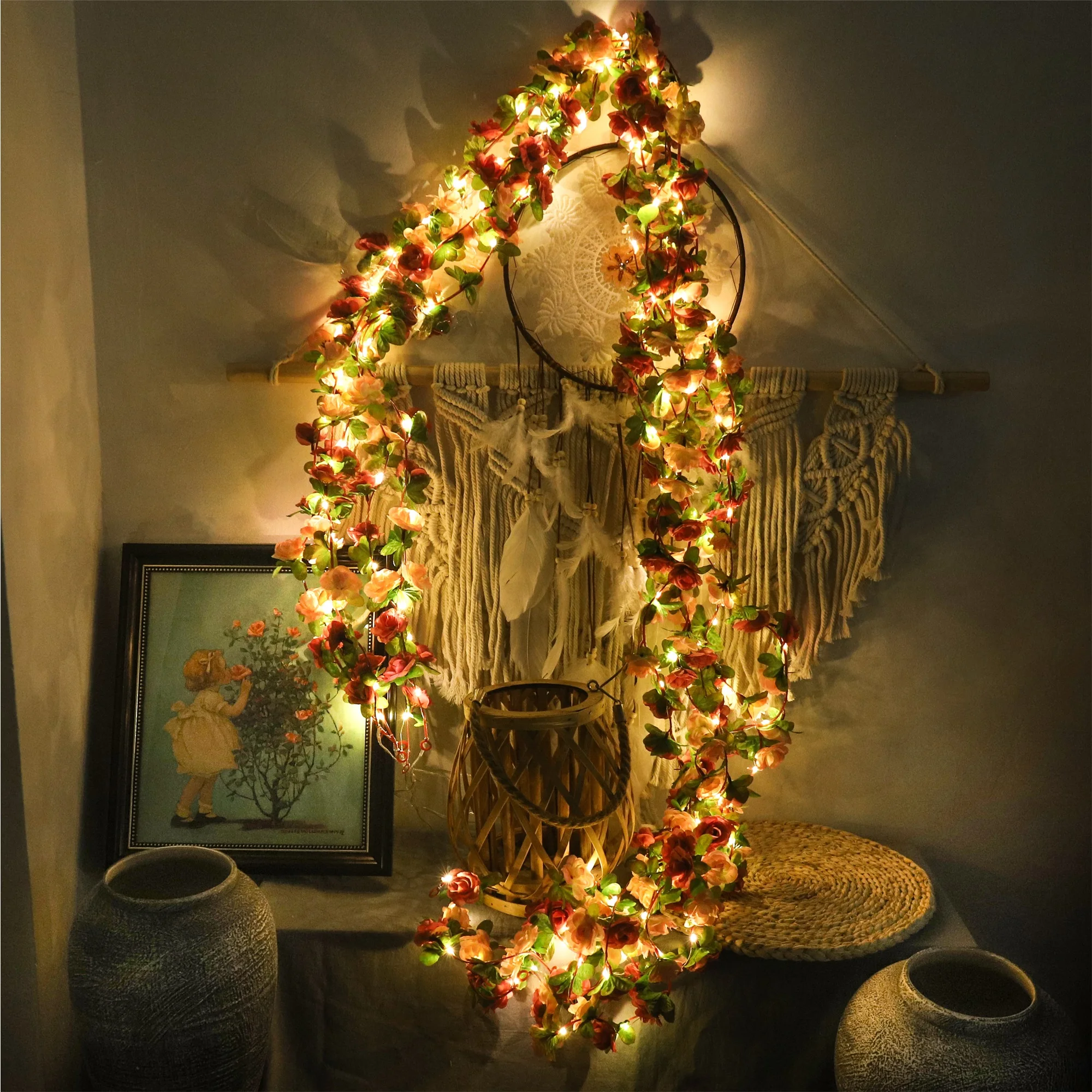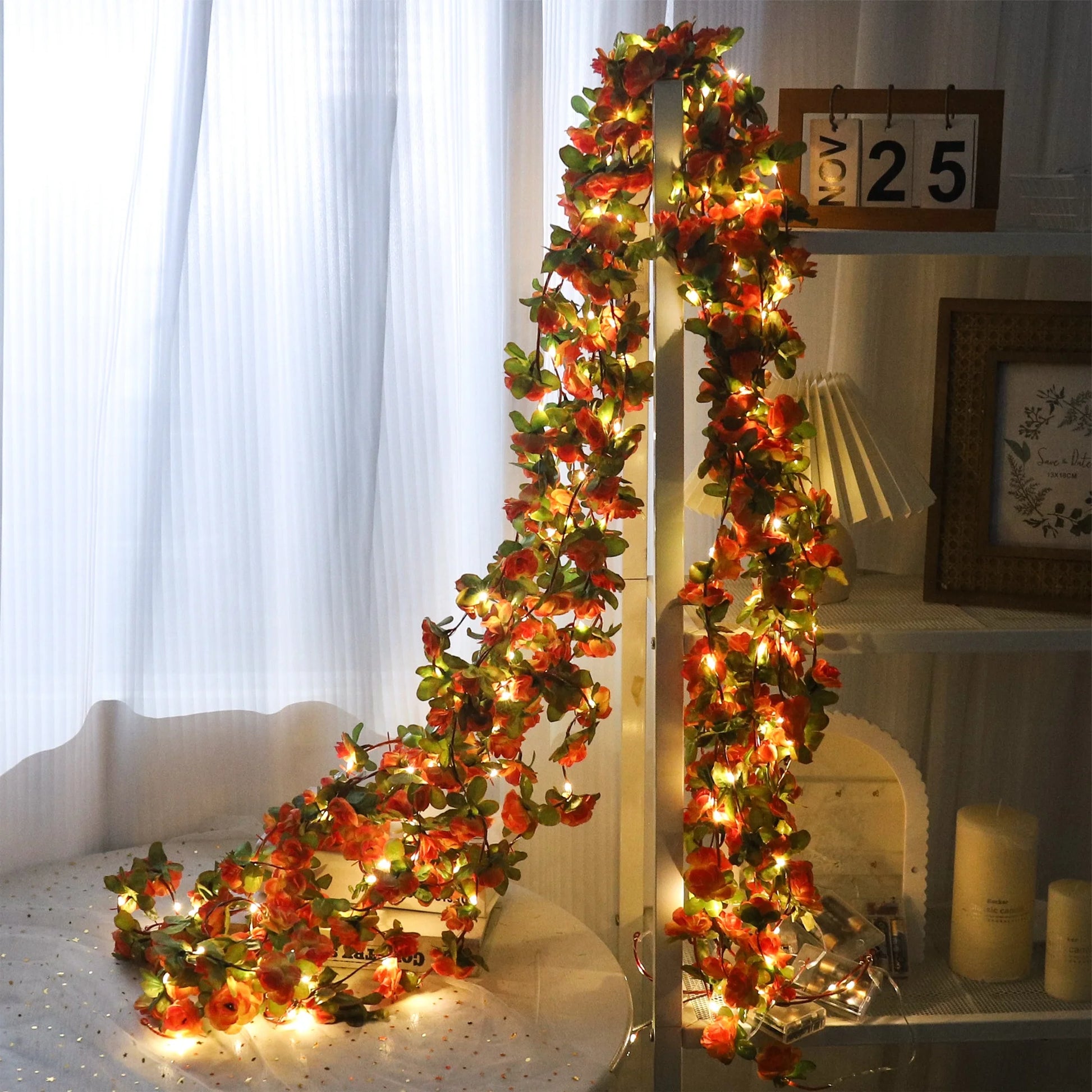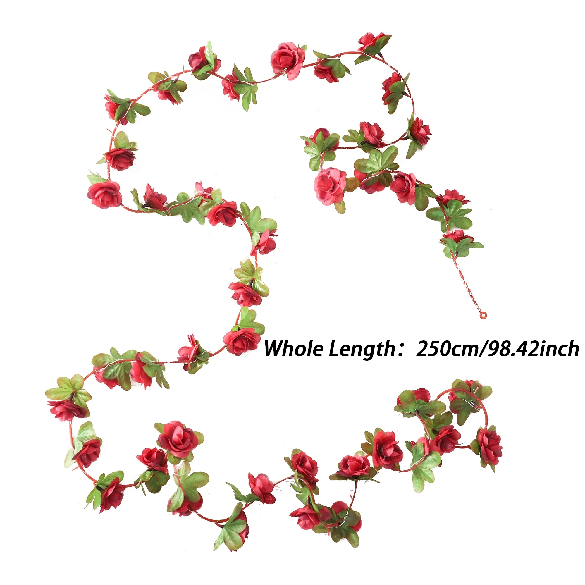 250CM Rose Vine With LED Lights Artificial Flowers Wedding Home Room Decoration Spring Autumn Garden Arch Christmas Rattan Vine
