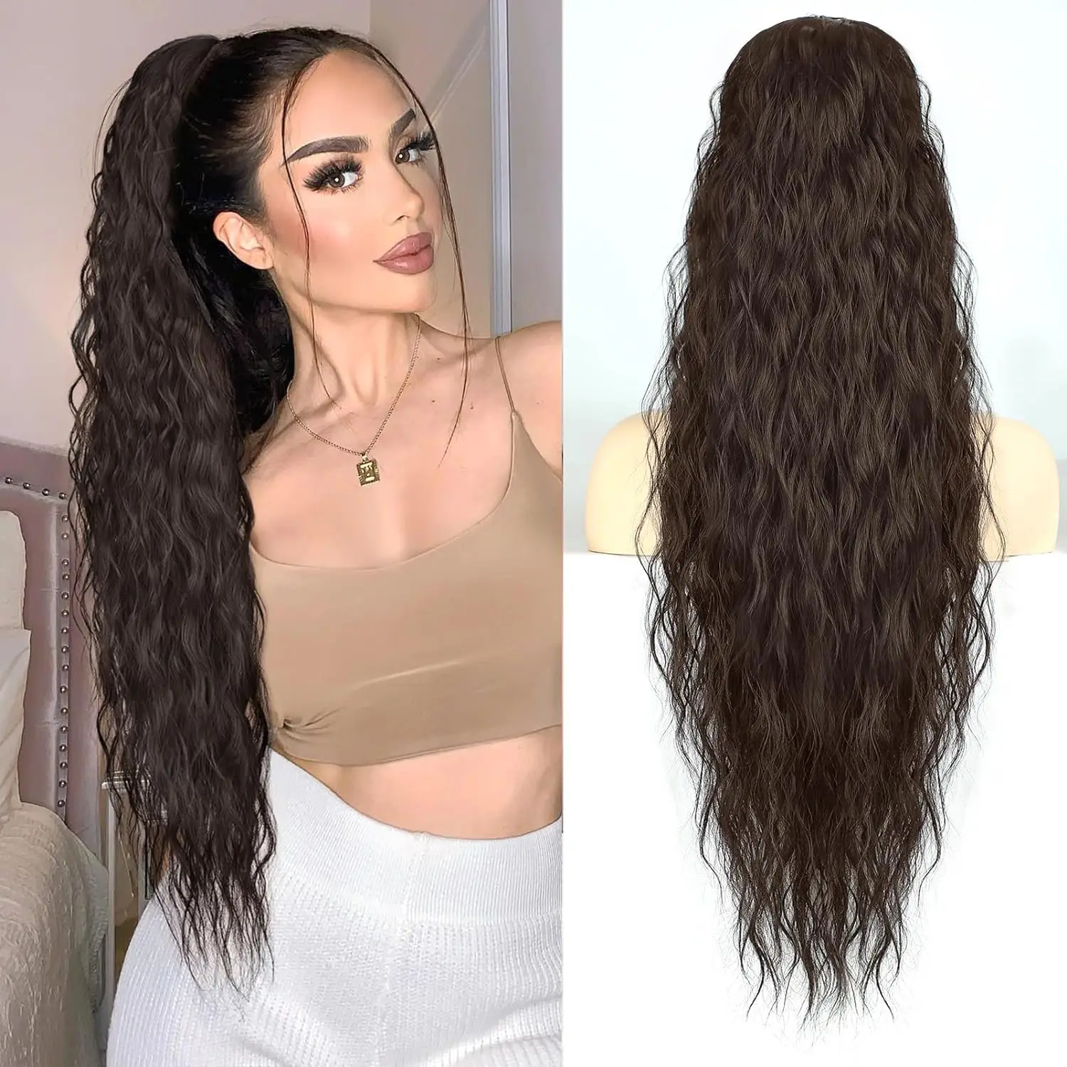 5.Designed with a comfortable and breathable inner mesh, which is non-irritating to the hair. Weighing about 150g, the corn wave ponytail hair extension is designed to be breathable and free of restraint.