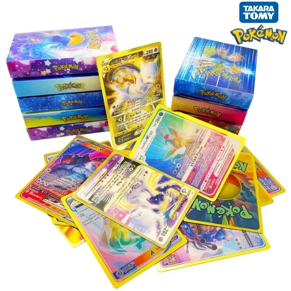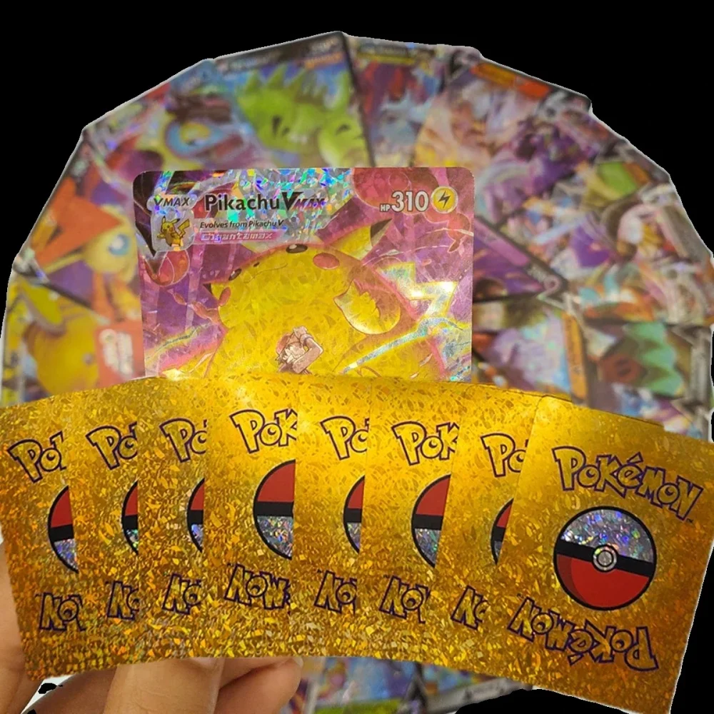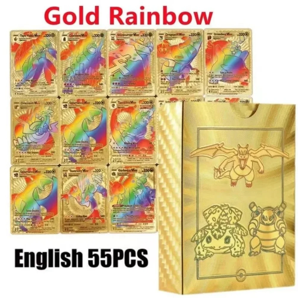 27-55Pcs Pokemon Cards Gold Foil Golden Letters English Spanish Game Card Metalicas Charizard Vmax Gx Series Gift