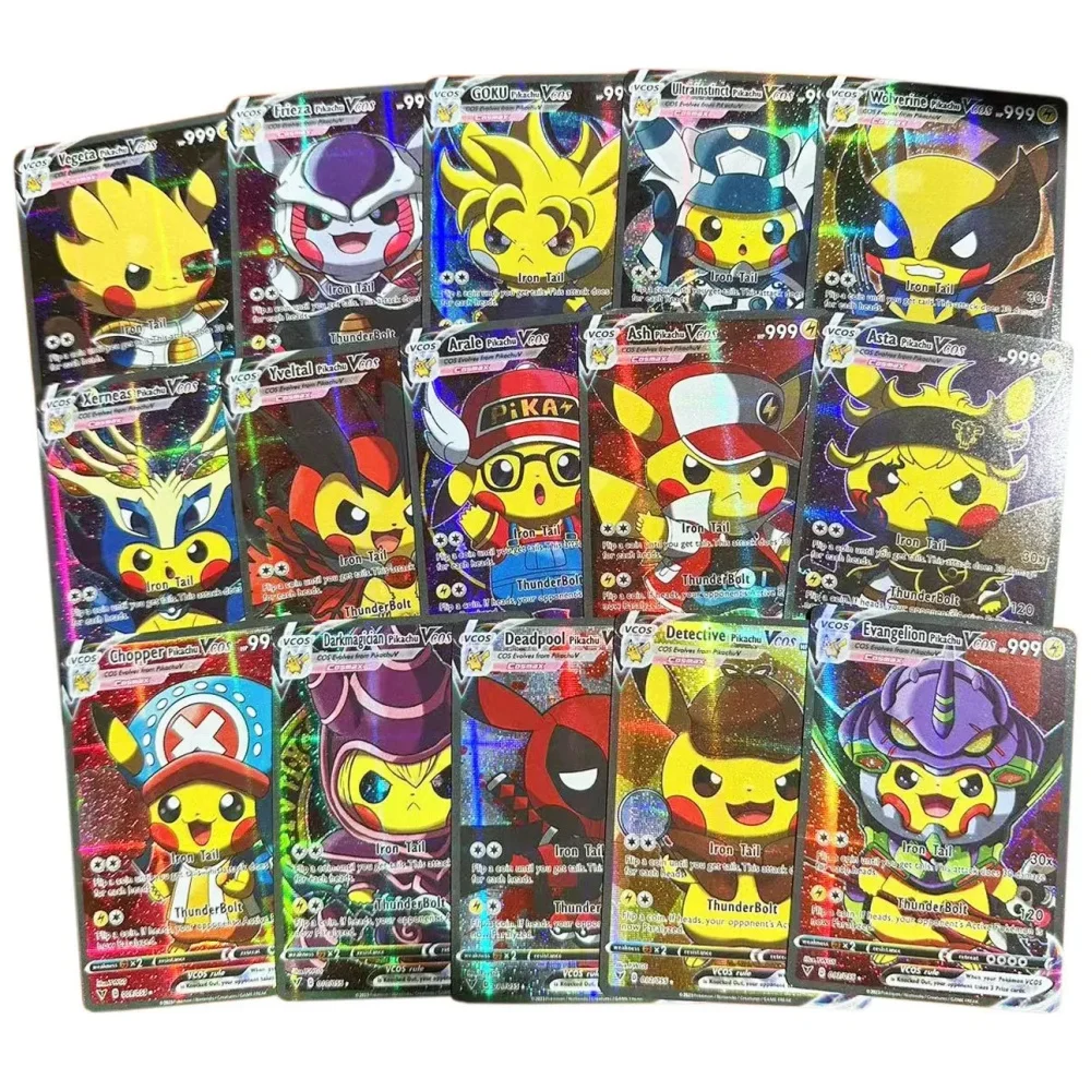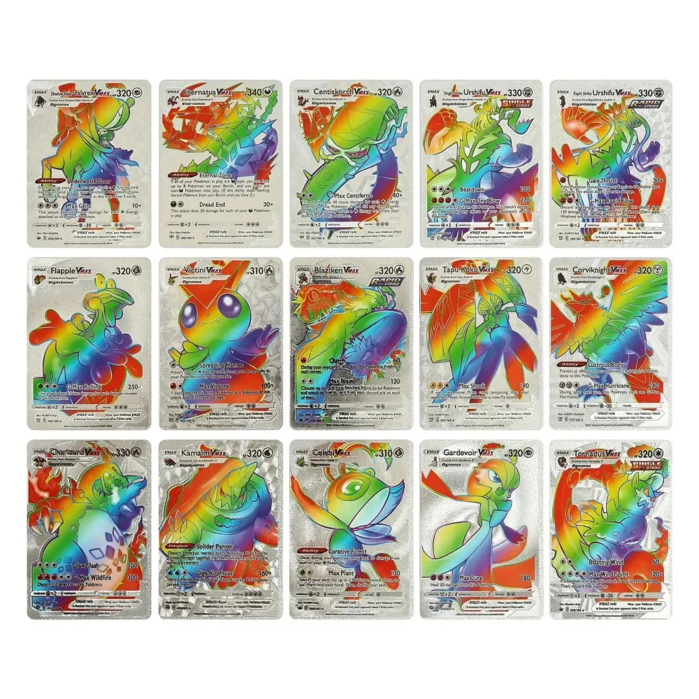 27-55Pcs Pokemon 3D Cards Colorful Shining English Spanish Vmax Gx Charizard Pikachu Trading Collection Battle Card Toys Gifts