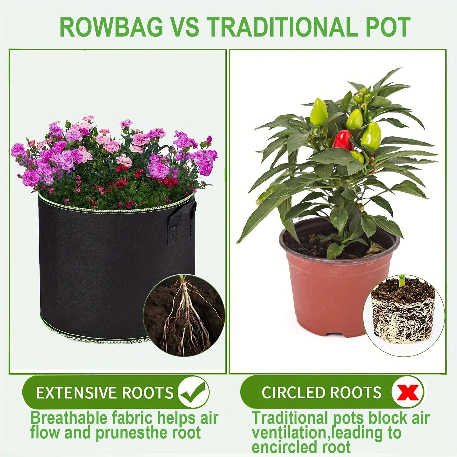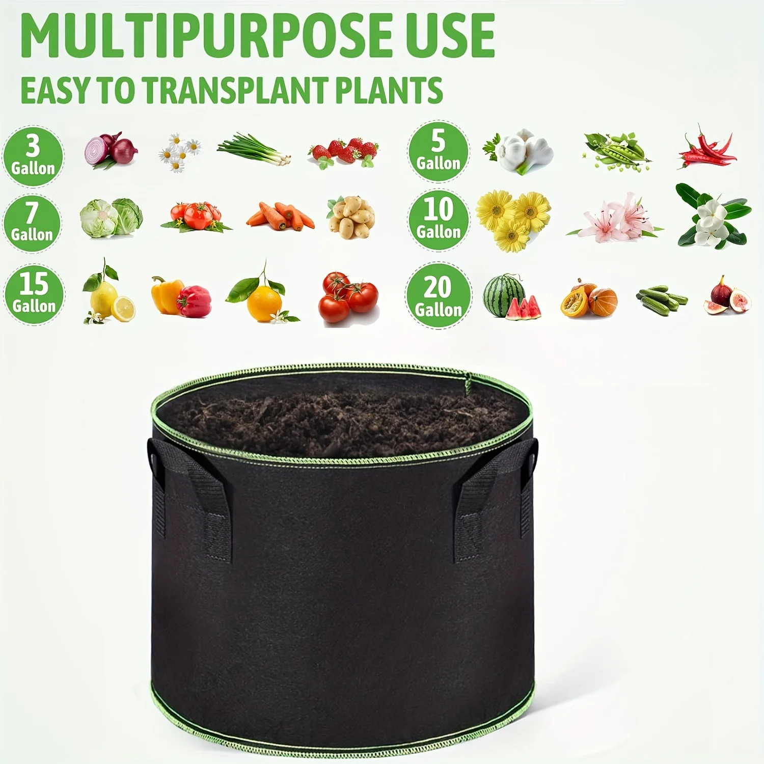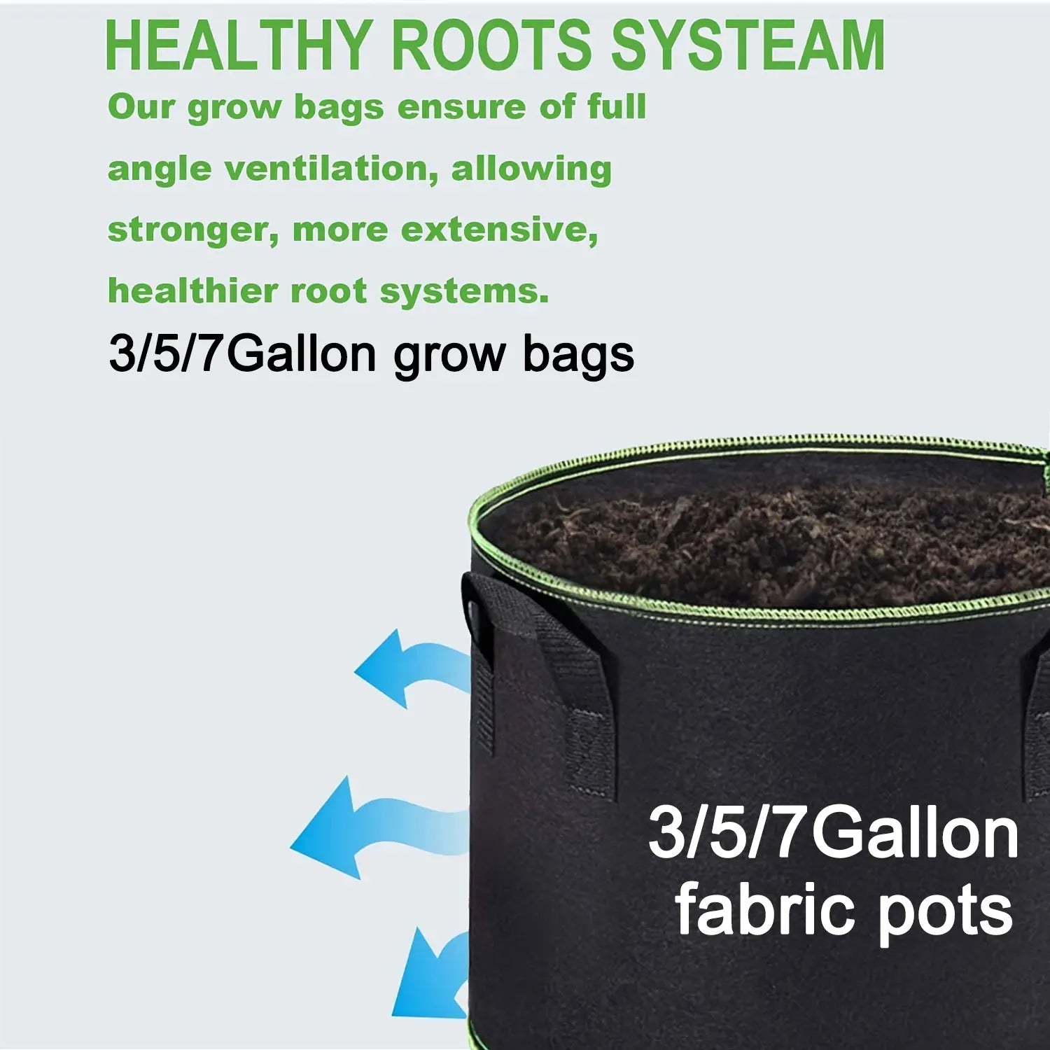 3/5/7 Gallon Grow Bags with Handles & Lock Edges, 5/6/13 Packs Non-Woven Fabric Pots, Reinforced Planting Bags for Vegetables