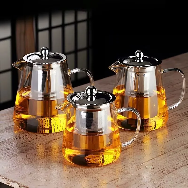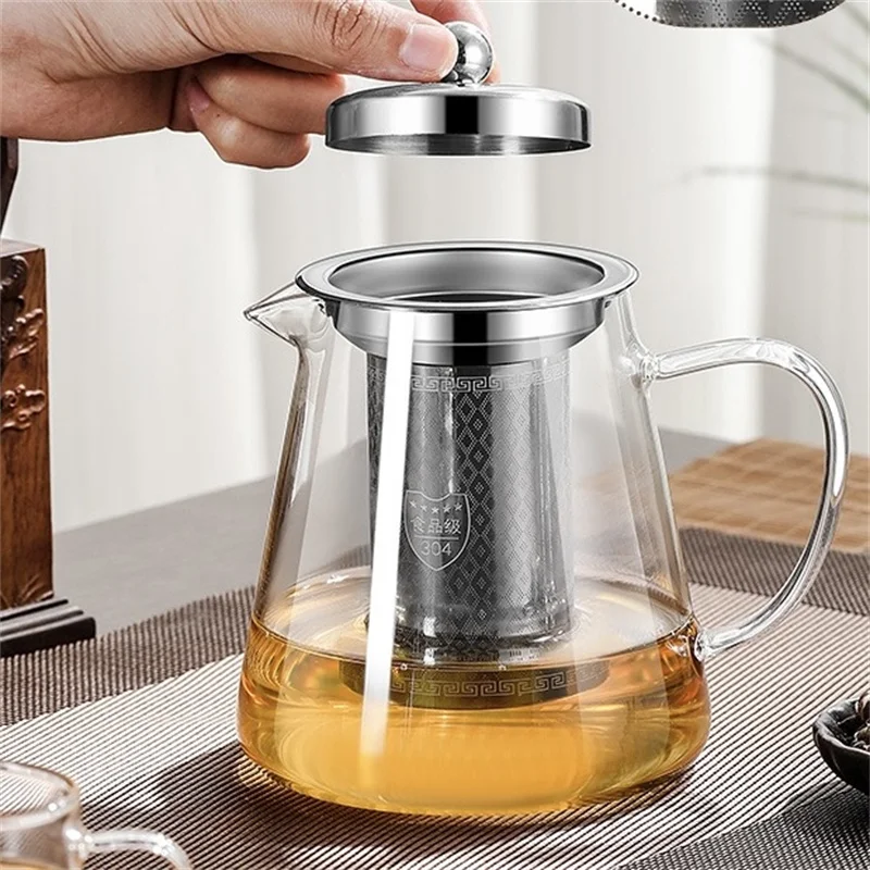 450ml-1350ml Heat Resistant Glass Teapot with Stainless Steel Tea Strainer Infuser Flower Puer Tea Pot Kung Fu Tea Maker Tea Set