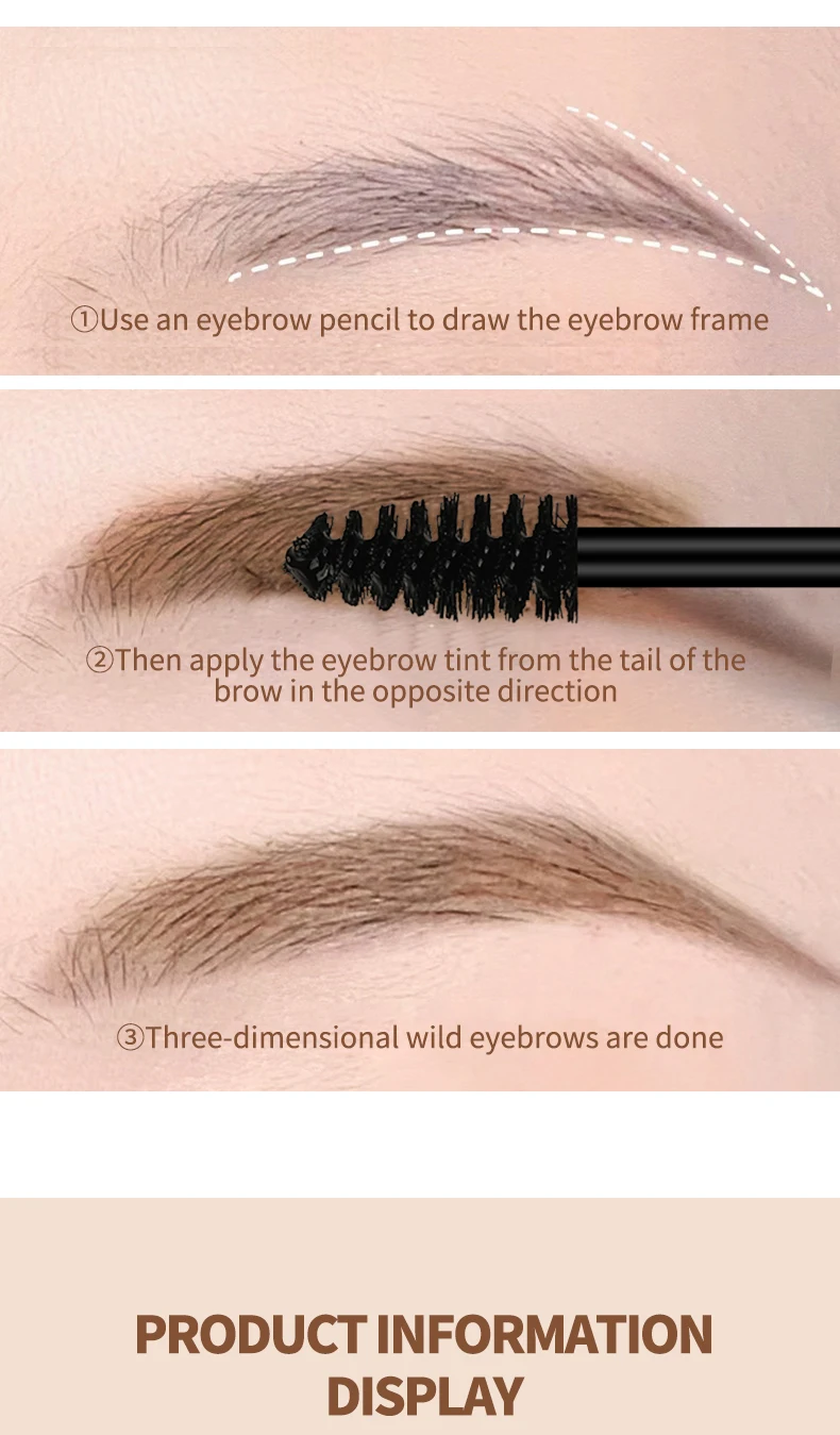 ②Then apply the eyebrow tint from the tail of the brow in the opposite direction
