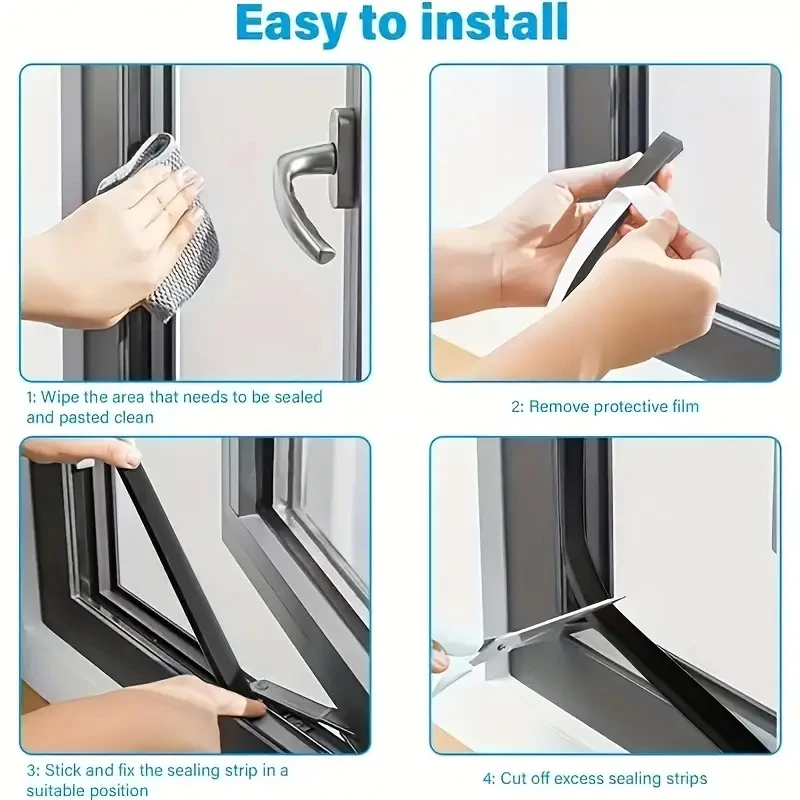4M Foam Self-adhesive Door Window Sealing Strip Wearable Sliding Dustproof Sponge Strip Soundproof Home Insulation sealing tape