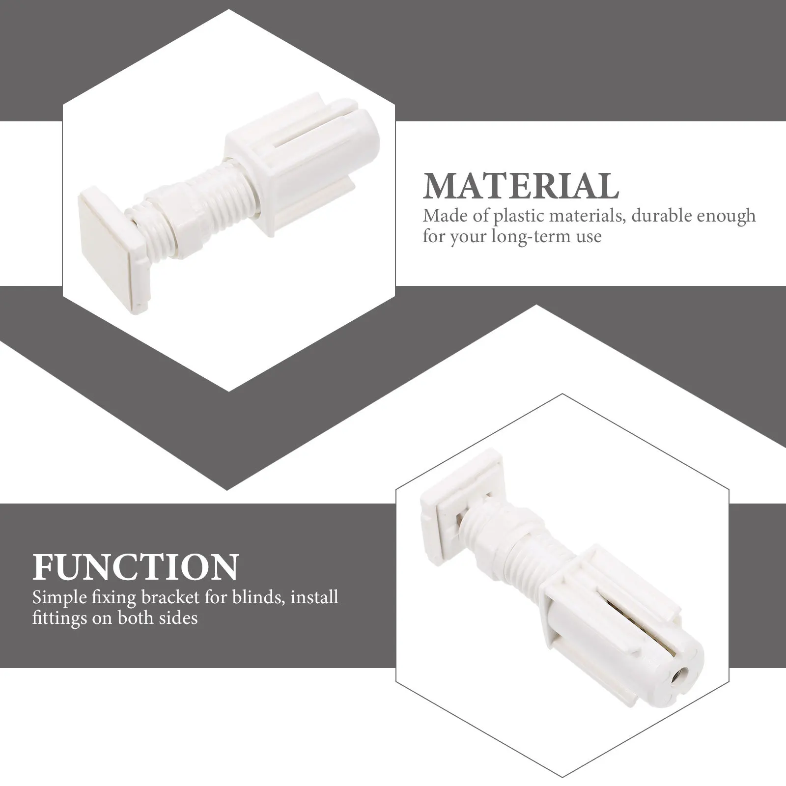 This venetian blind bracket, which is made of premium material, sturdy and to use. Easy to install and hold the venetian blind firmly. Features simple and modern style to make it suitable for different curtain fixing demand. It's a good choice for venetian blind.