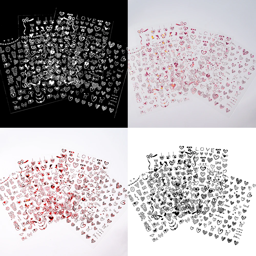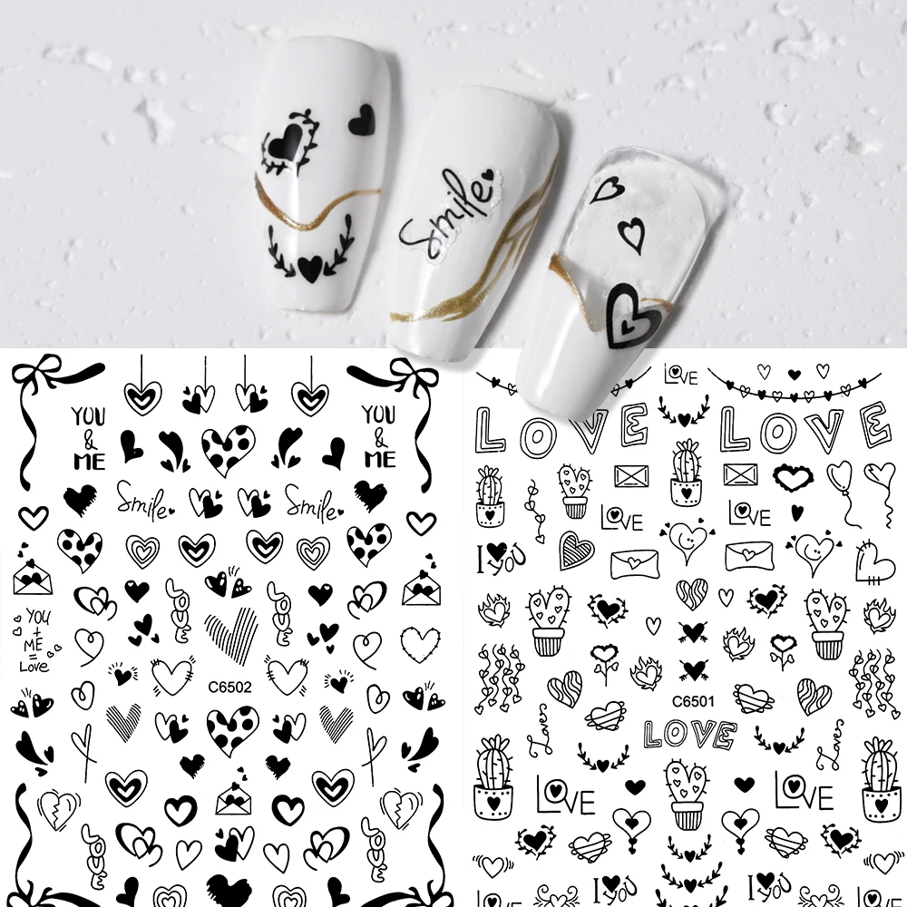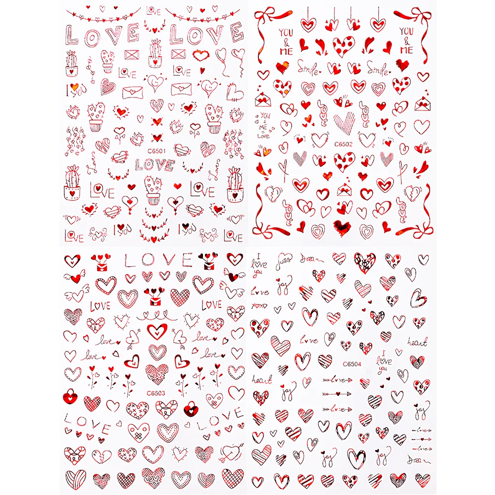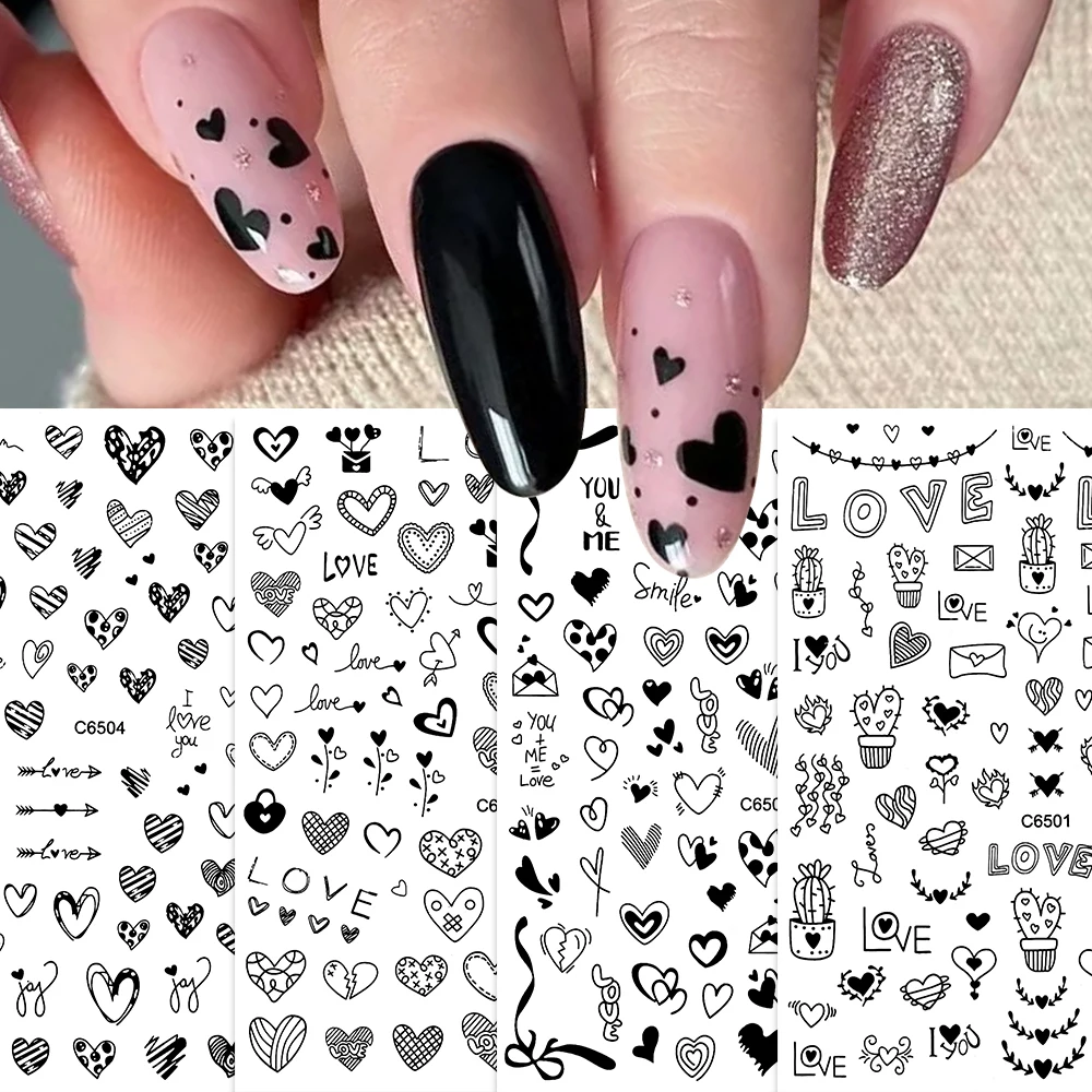 4Pcs Love Heart 3D Nail Art Decals 10*8cm Red Black Letter & LOVE Adhesive Sliders Nail Stickers Decoration For Valentine's Day