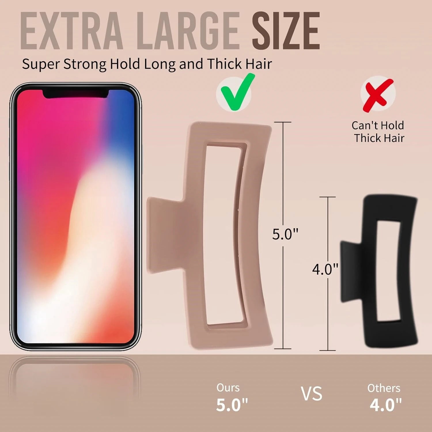 5 Inche Extra Large Claw Clips for Thick Hair and Long Hair, 4 Pack Xl Jumbo Claw clips, Oversized Matte Non-slip Rectangle Hair