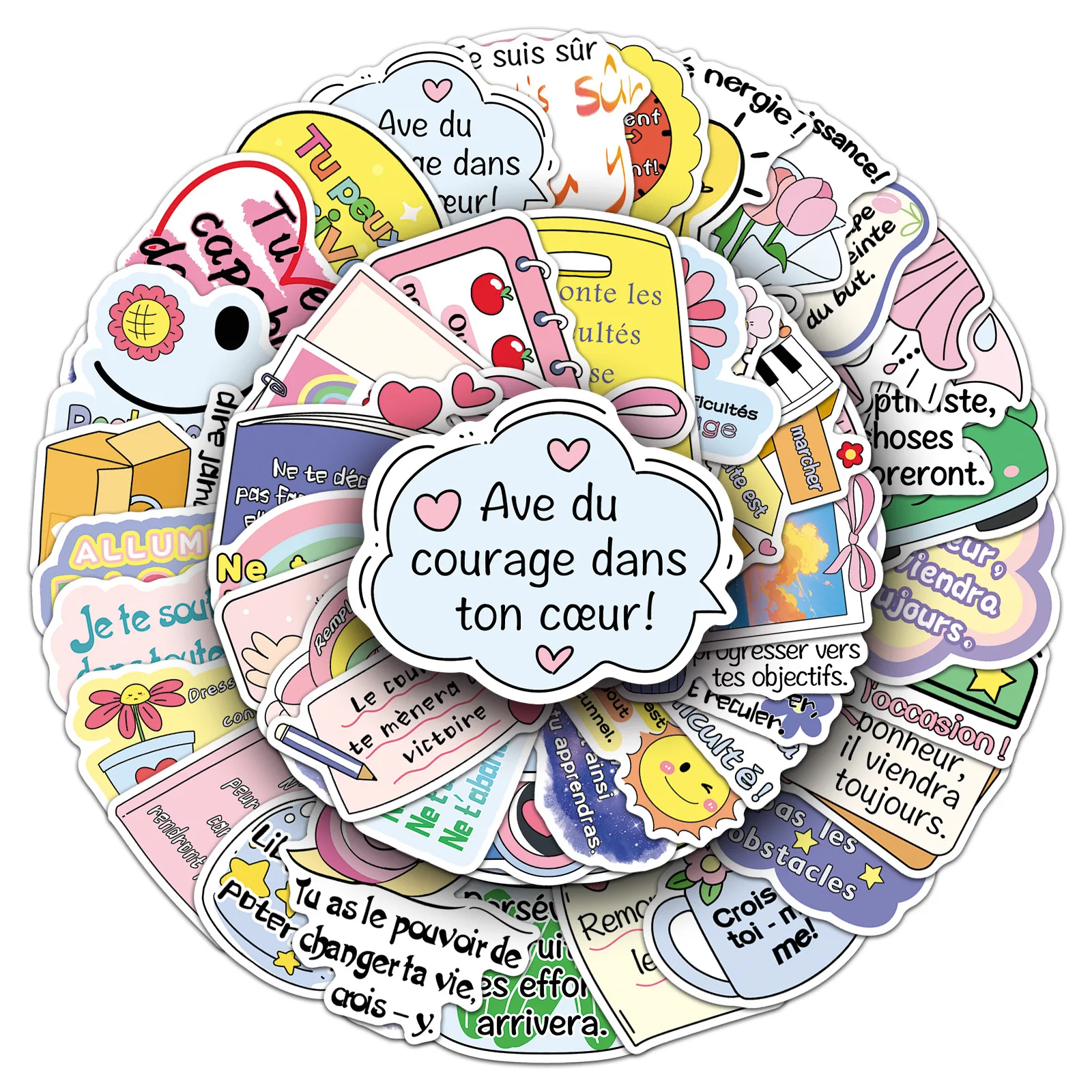 50PCS French Inspirational Text Waterproof Stickers Short Sentence Graffiti Decoration Notebook Suitcase Water Cup Guitar Toys