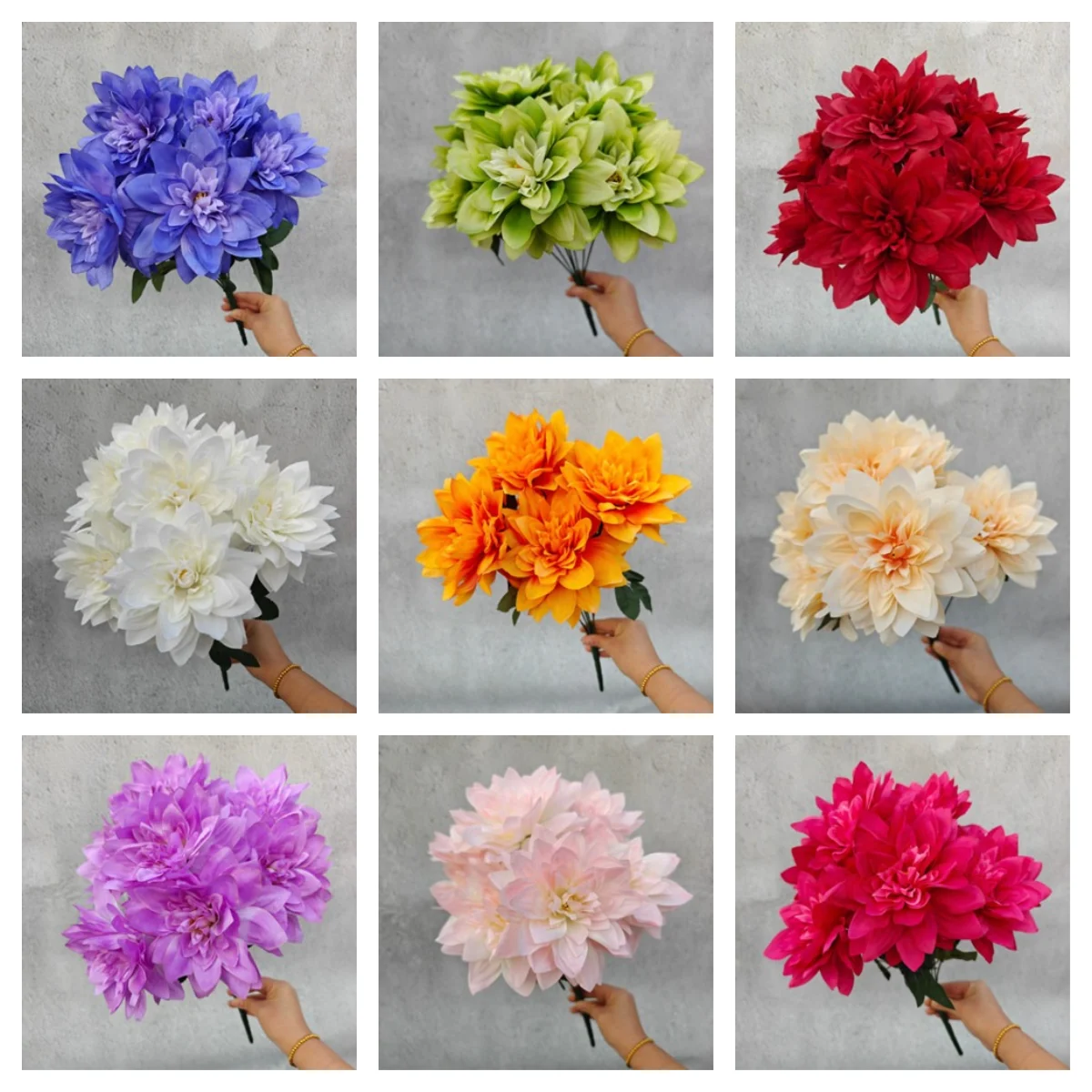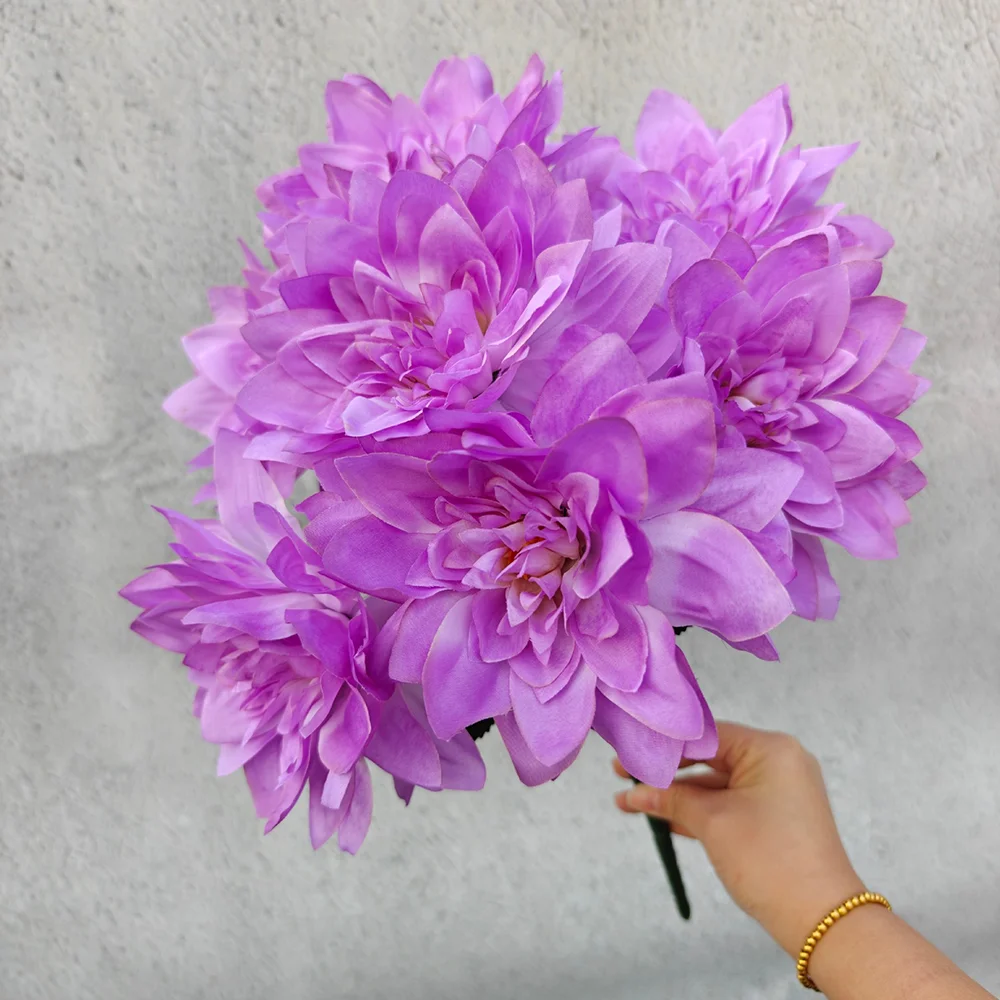 7 Heads Dahlia Artificial Flowers - Realistic Fake Dahlia Bouquet for Home Decoration, Wedding Centerpieces, Party Decor