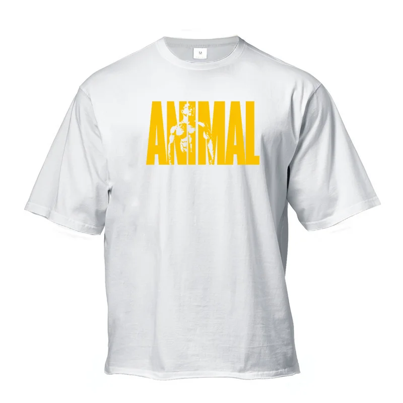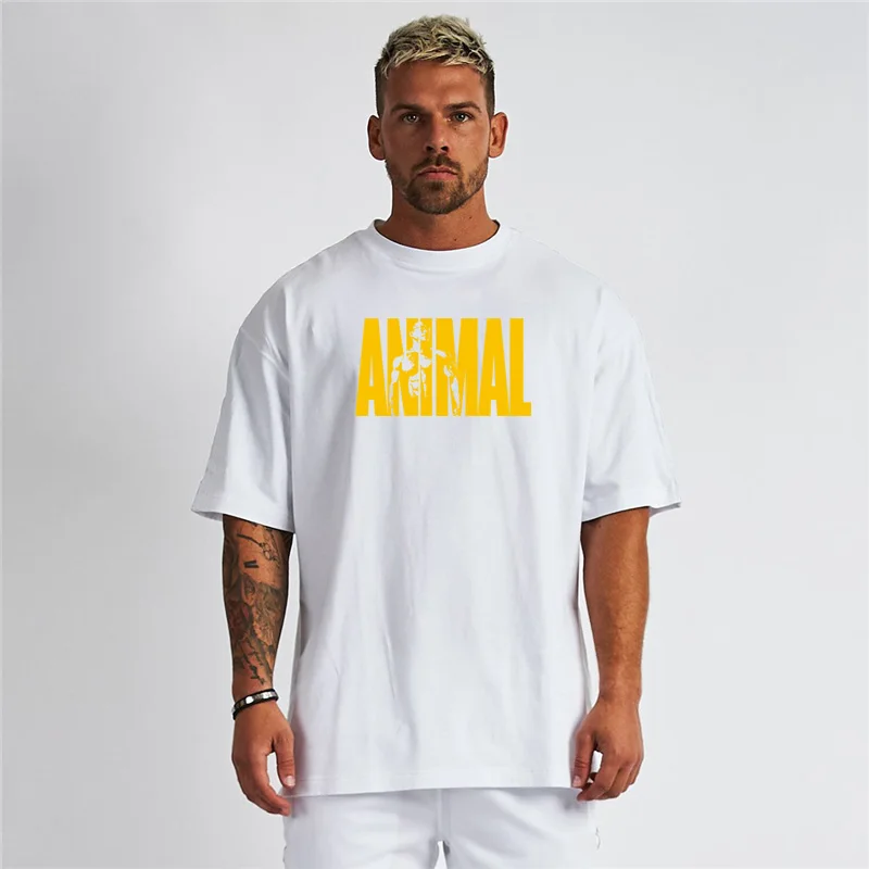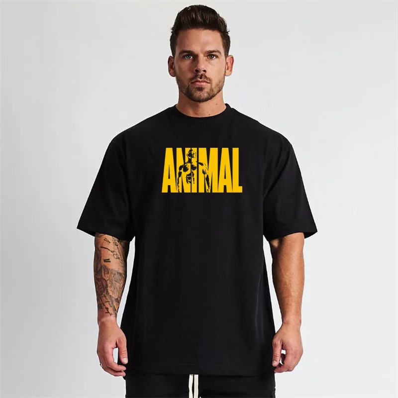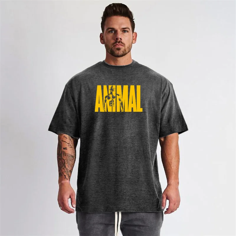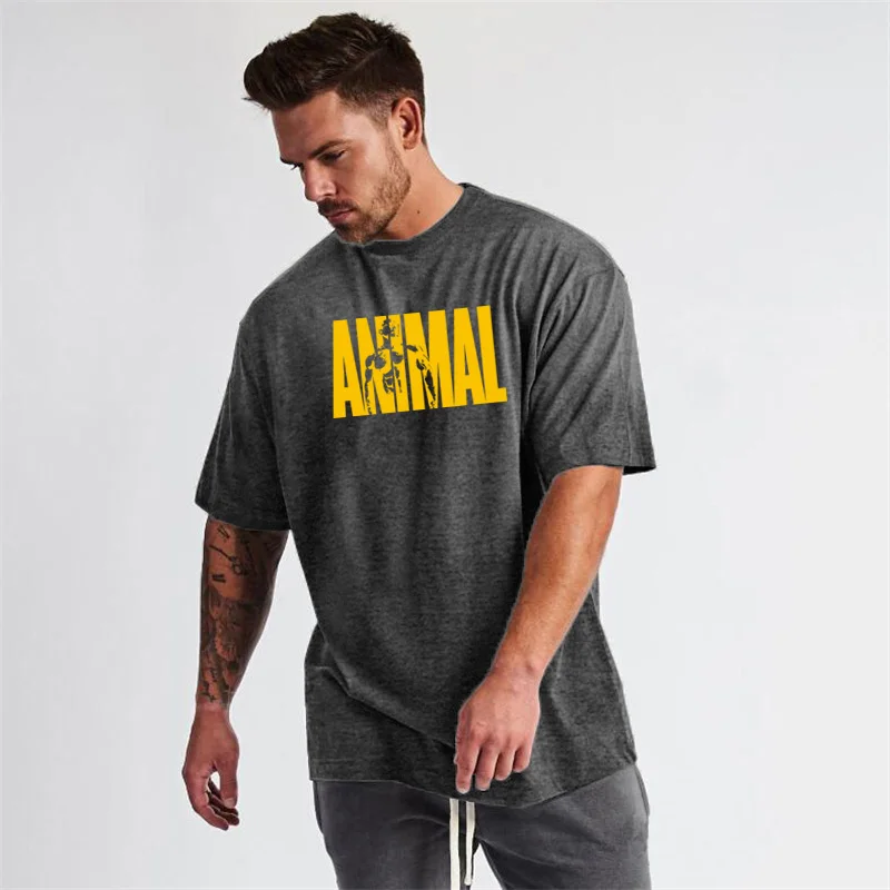 ANIMAL Letter Printed Summer Mens Oversized Half Sleeve T Shirt Cotton O Neck Casual Gym Clothing Fitness Loose Sports T-shirt