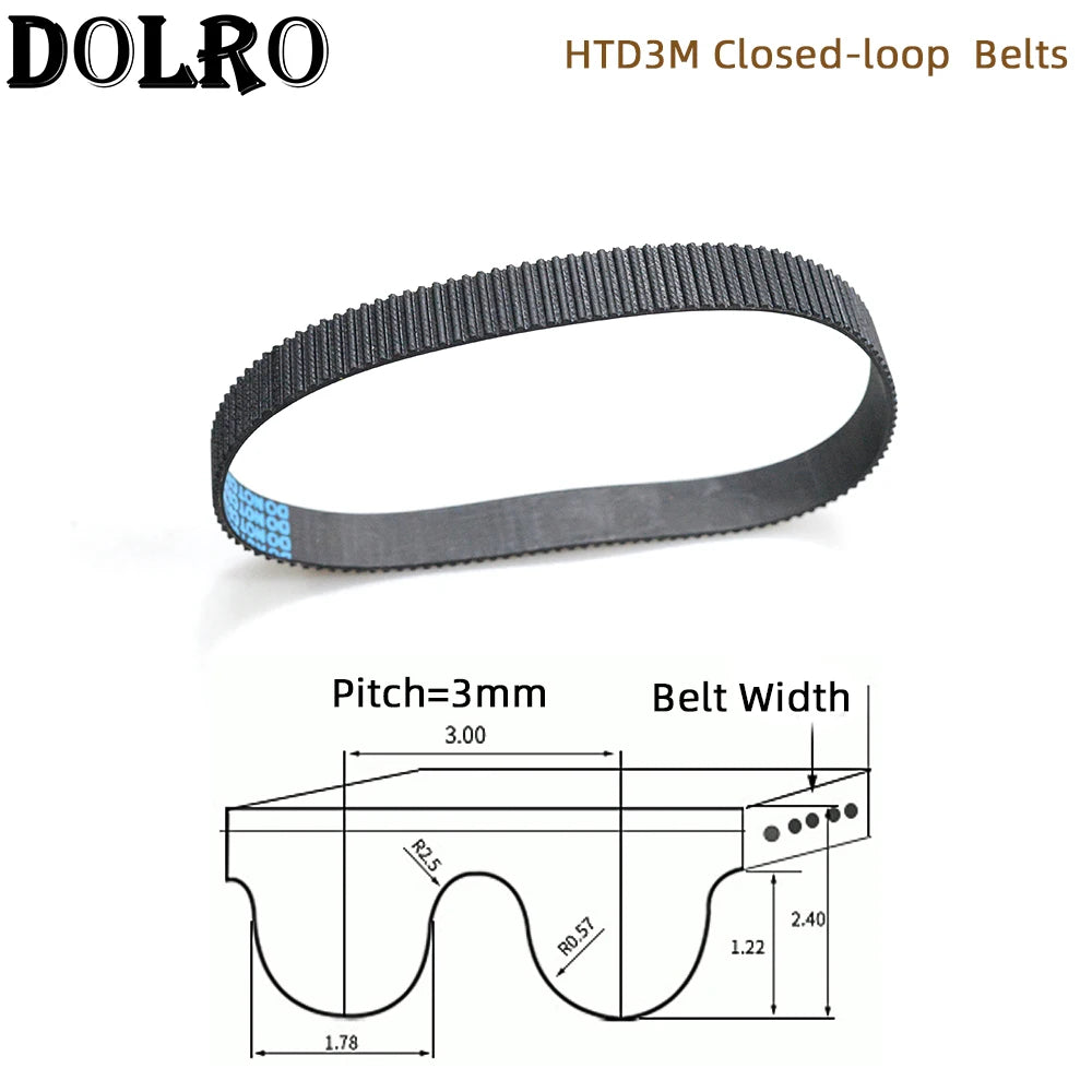 Arc HTD 3M Timing belt C=501 504 507 510 513 519 522 525 531 537 width 6/9/10/12/15/20mm Rubbe Closed Loop Synchronous pitch 3mm