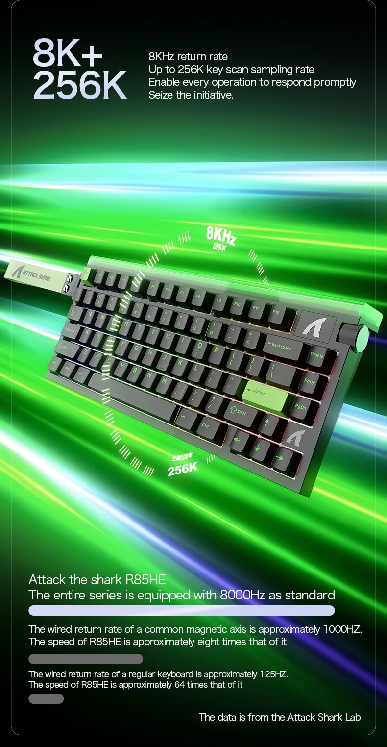 ATTACK SHARK R85 HE Wired 8KHz Magnetic Keyboard,0.005mm RT Accuracy,Support RT/Snap Tap/DKS/MT/TGL,With Custom Lightbox