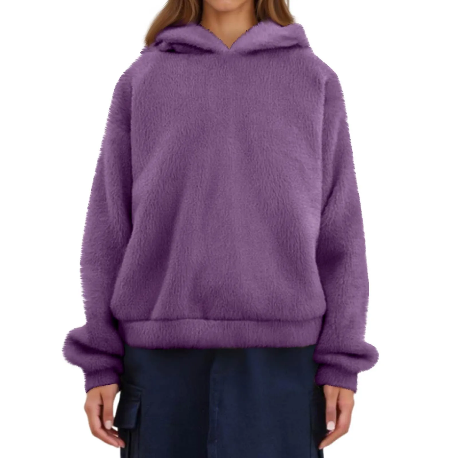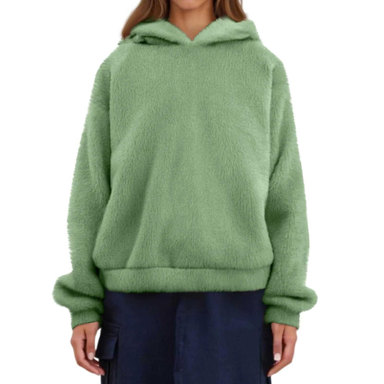 Women's Fashion Long Sleeve Solid Color Fleece Ears Hooded Warm Sweater Sweatshirt