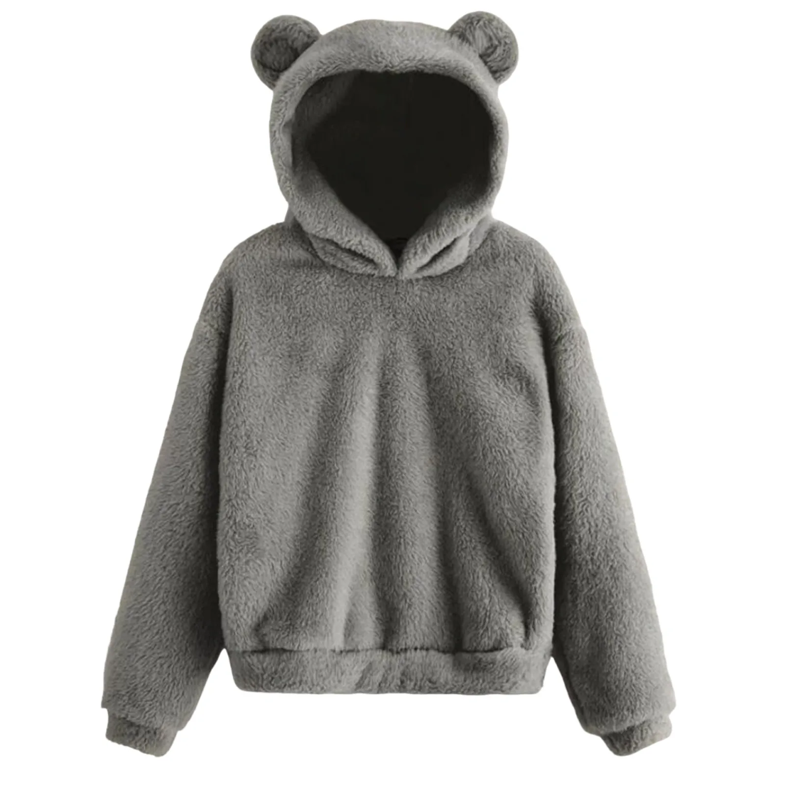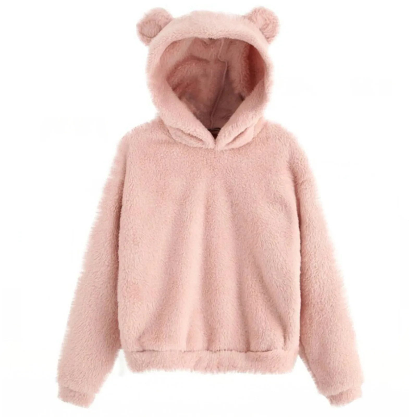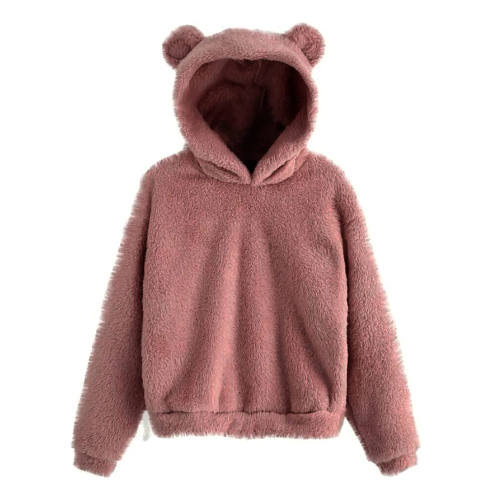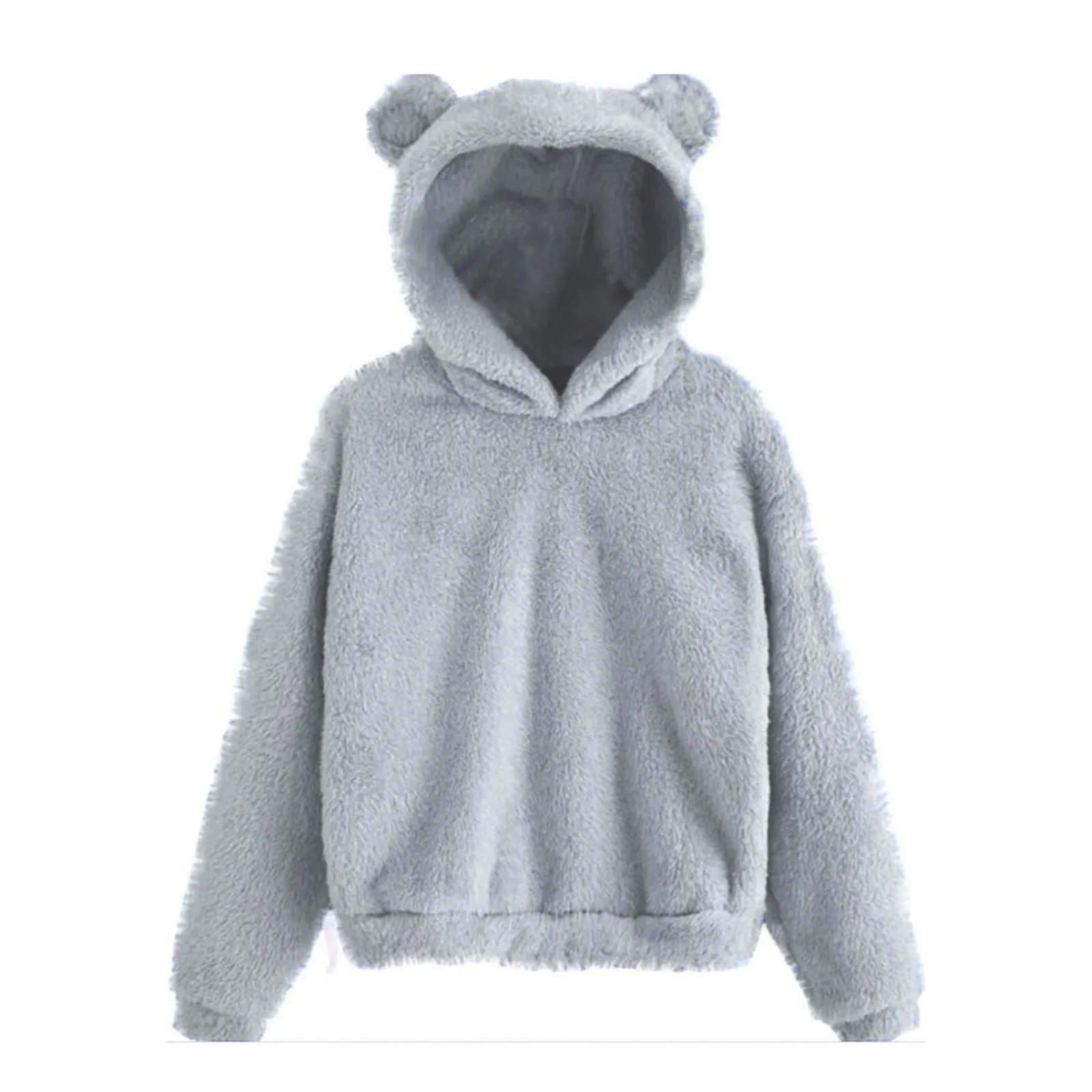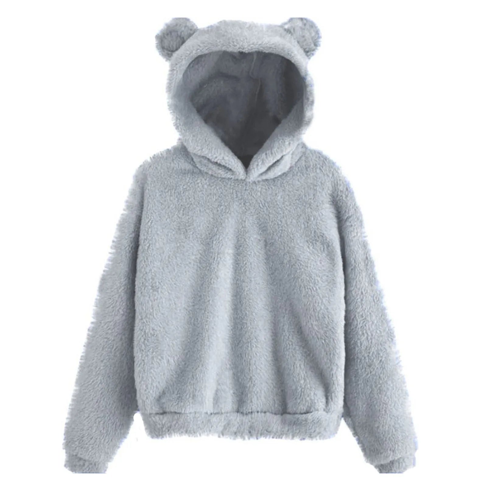 Autumn Women's Hoodies Long Sleeve Bear Ear Hood Sweatshirt Cute Plush Warm Casual Hoodie Tops Fleece Hooded Pullovers