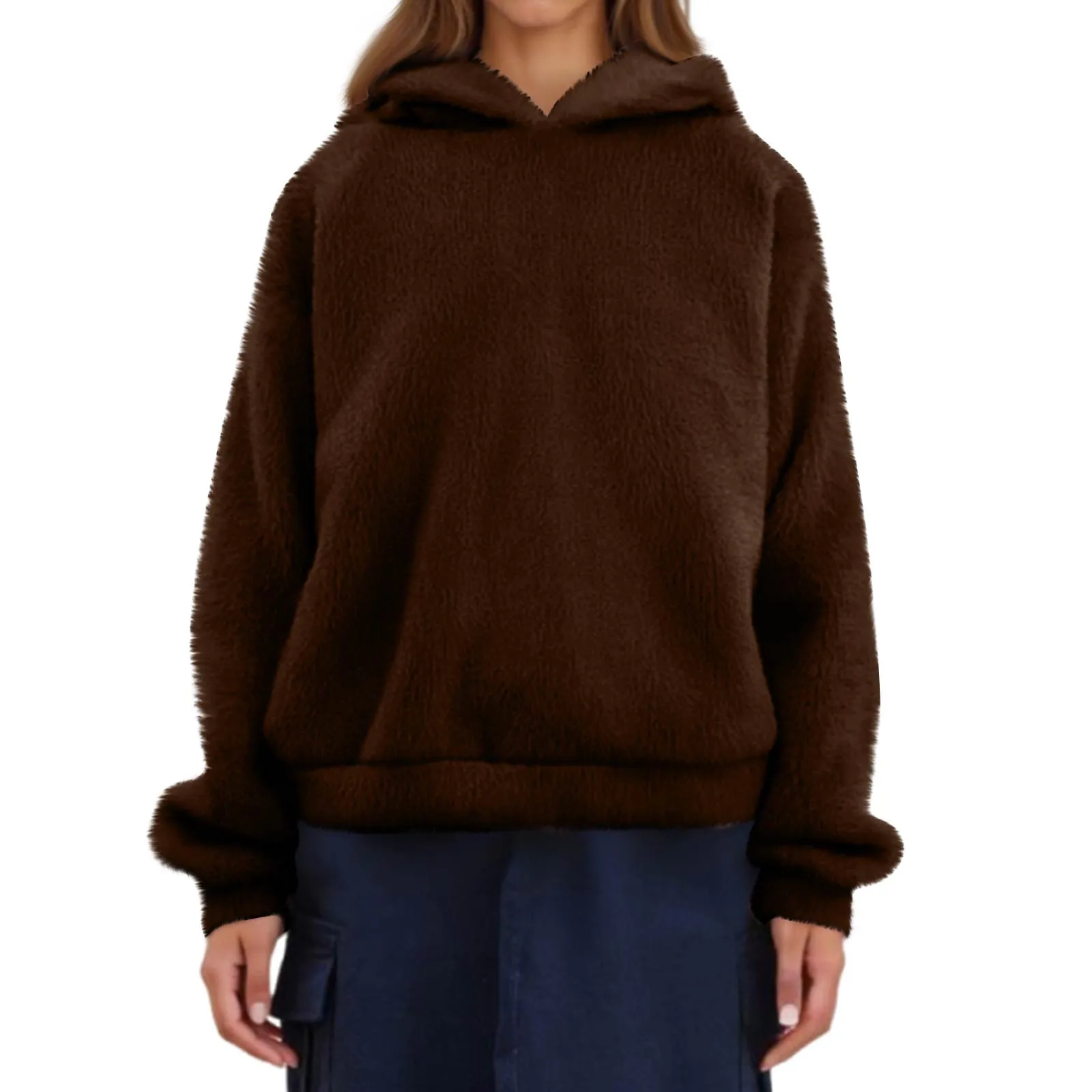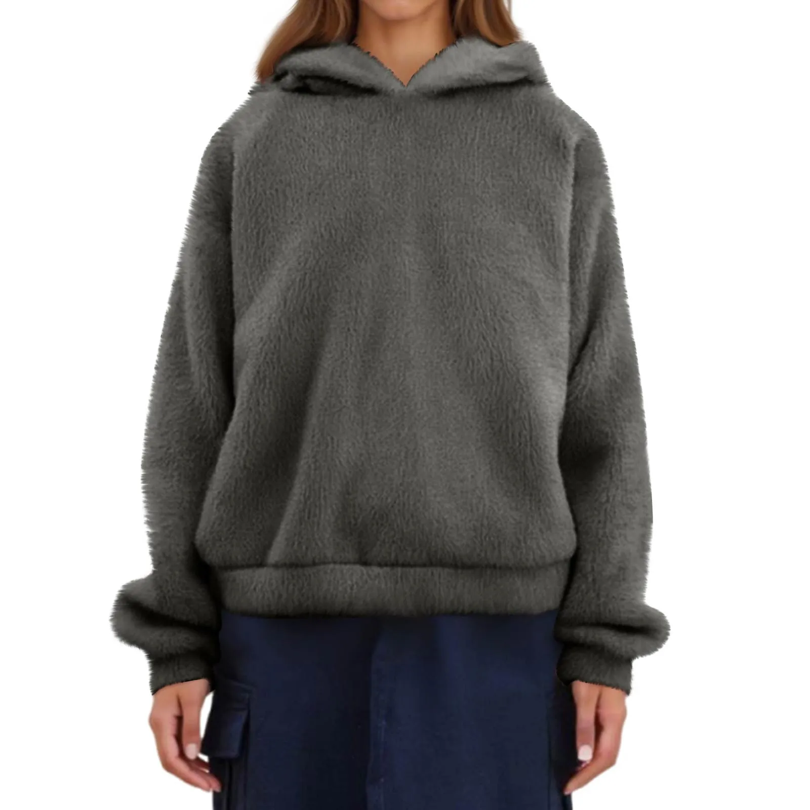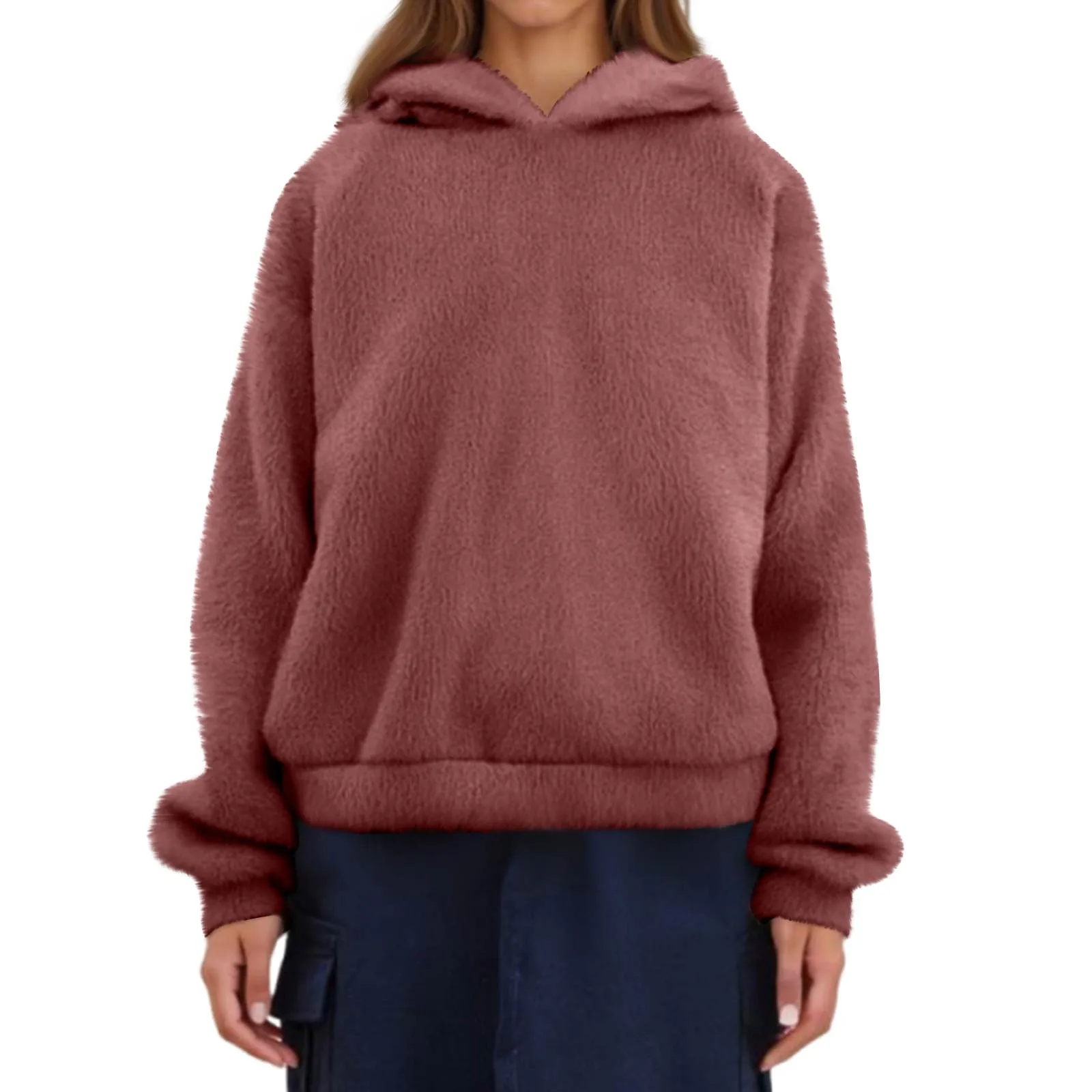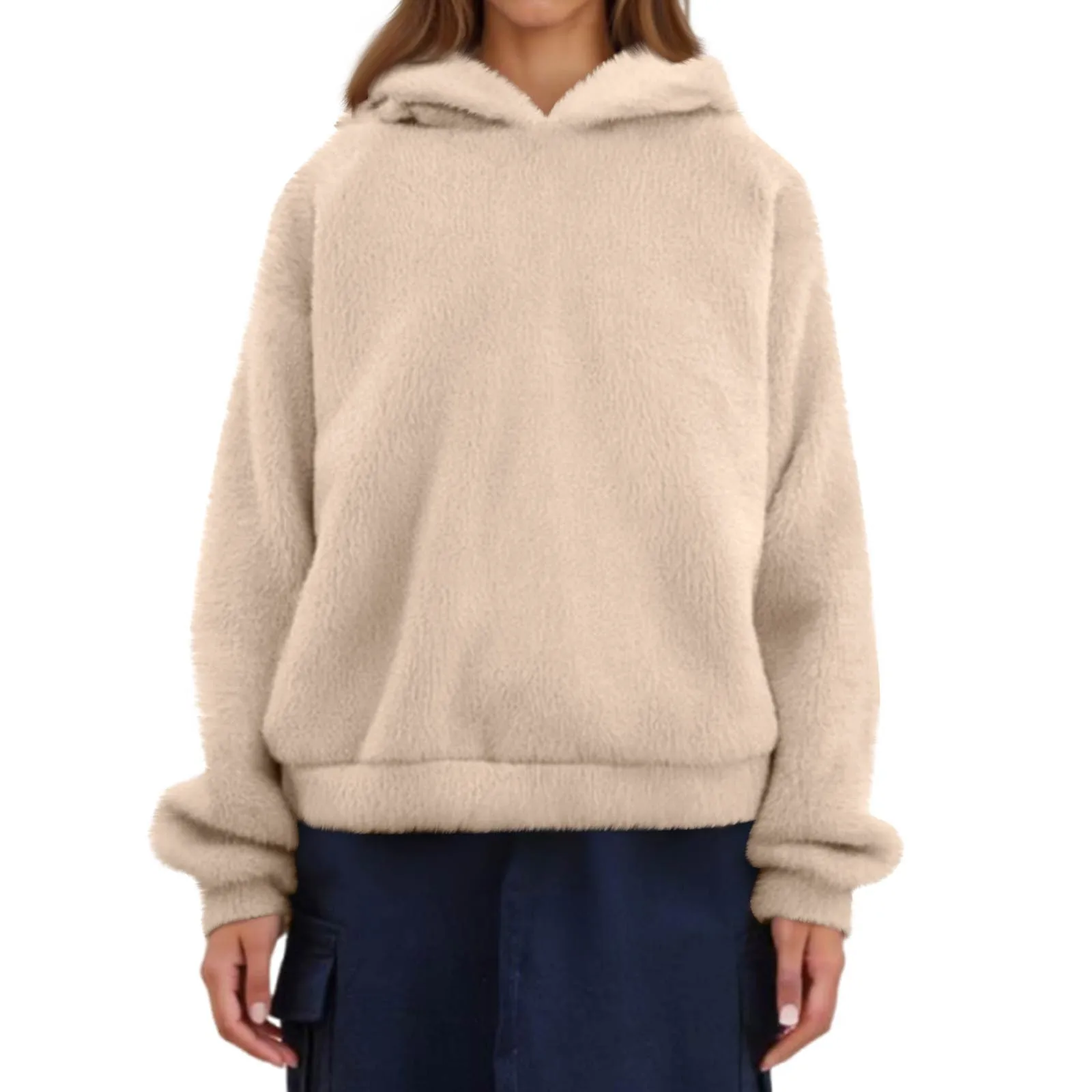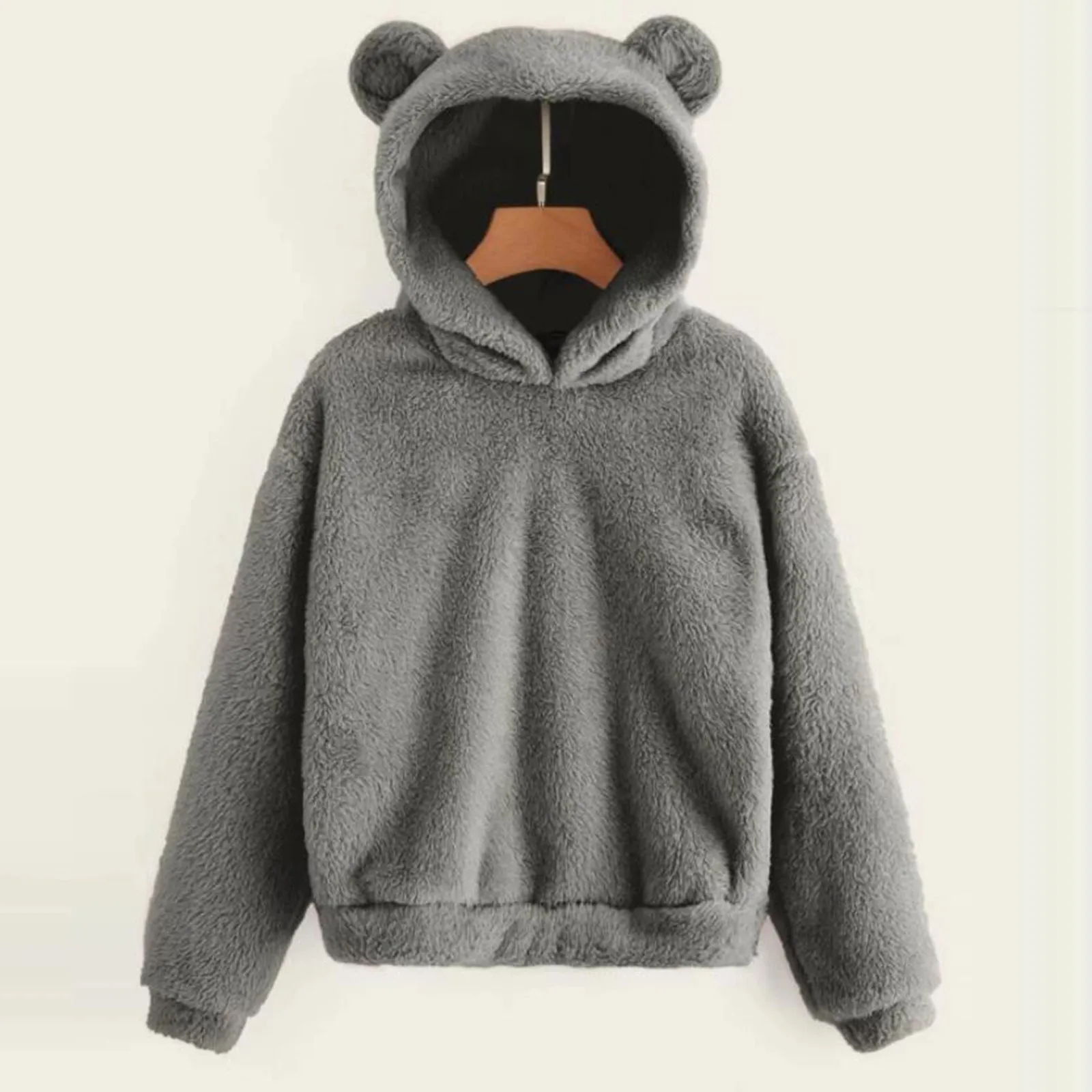 Autumn Women's Hoodies Long Sleeve Bear Ear Hood Sweatshirt Cute Plush Warm Casual Hoodie Tops Fleece Hooded Pullovers
