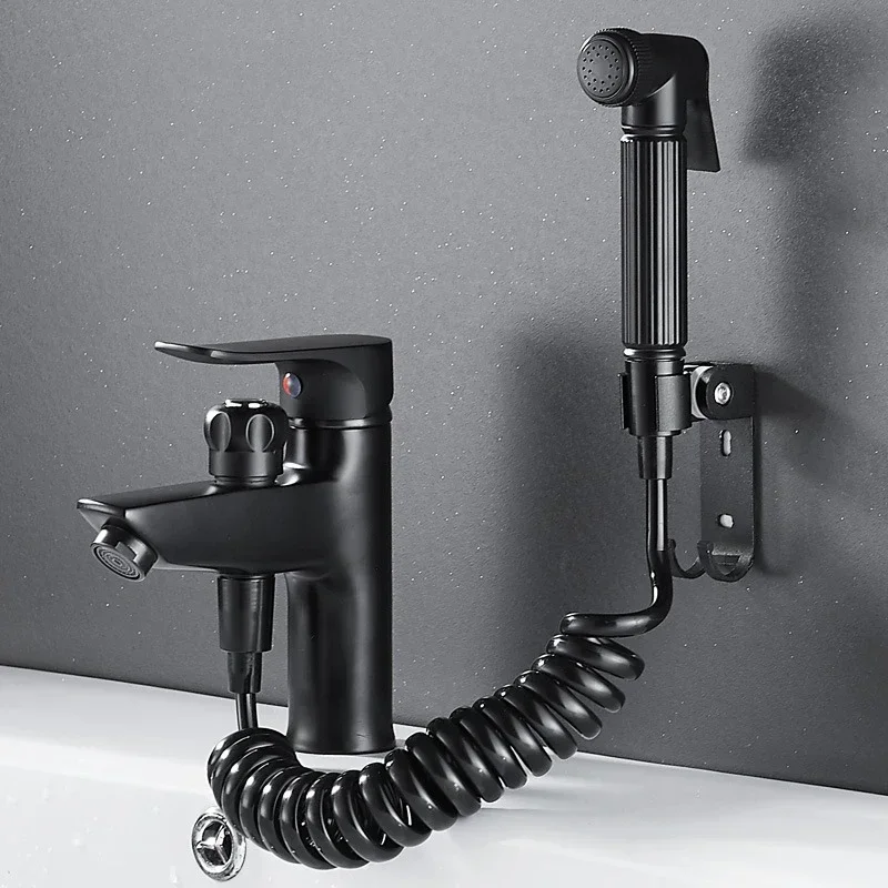 Basin Cold and Hot Water Faucet Double Use with Spray Gun Two-in-one Bath Shampoo Single-hole Bathroom Faucet