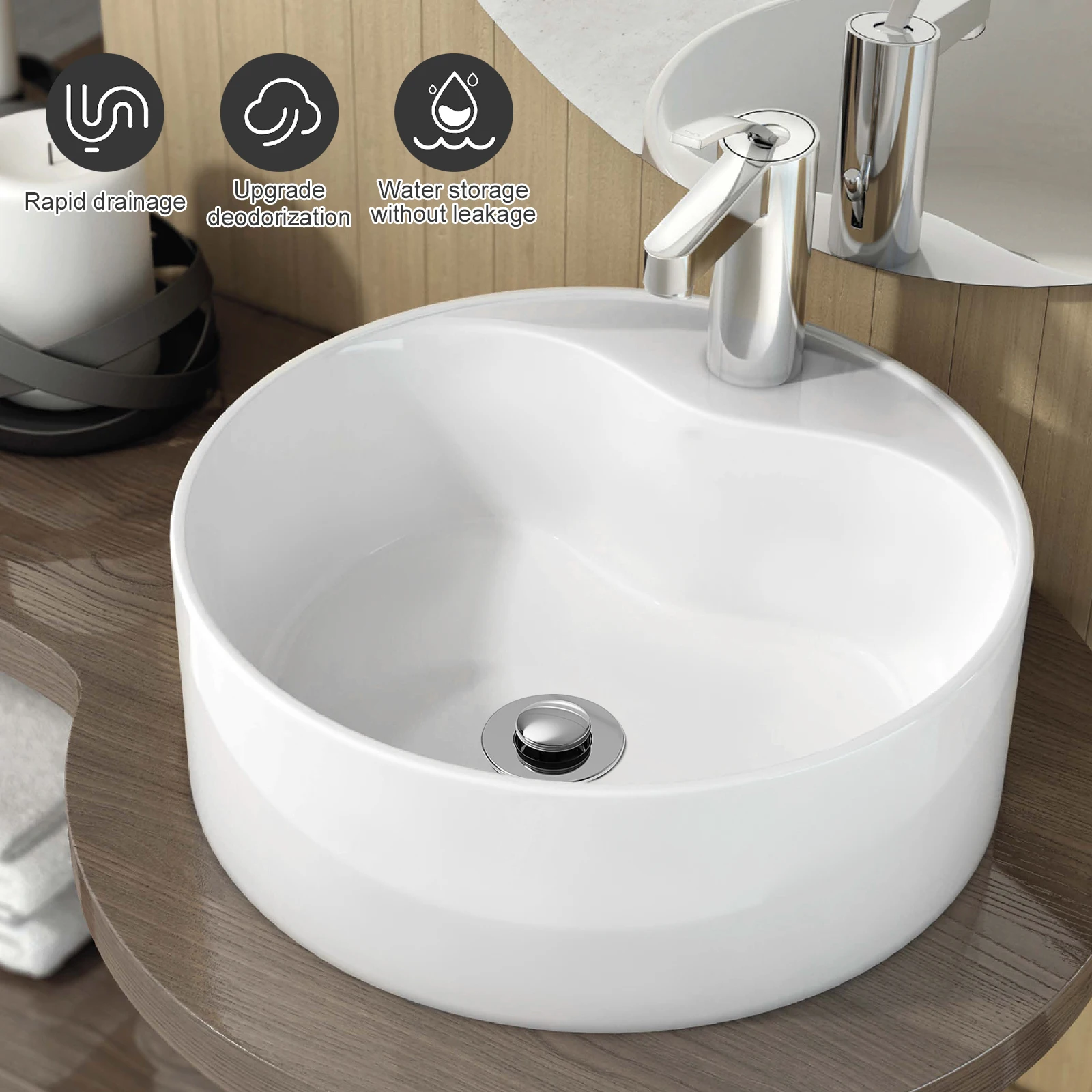 Anti Clogging: The pop up sink plug has a built in clogging basket that traps hair and other debris from entering the drain, which keeps the water draining smoothly and prevents clogging effectively