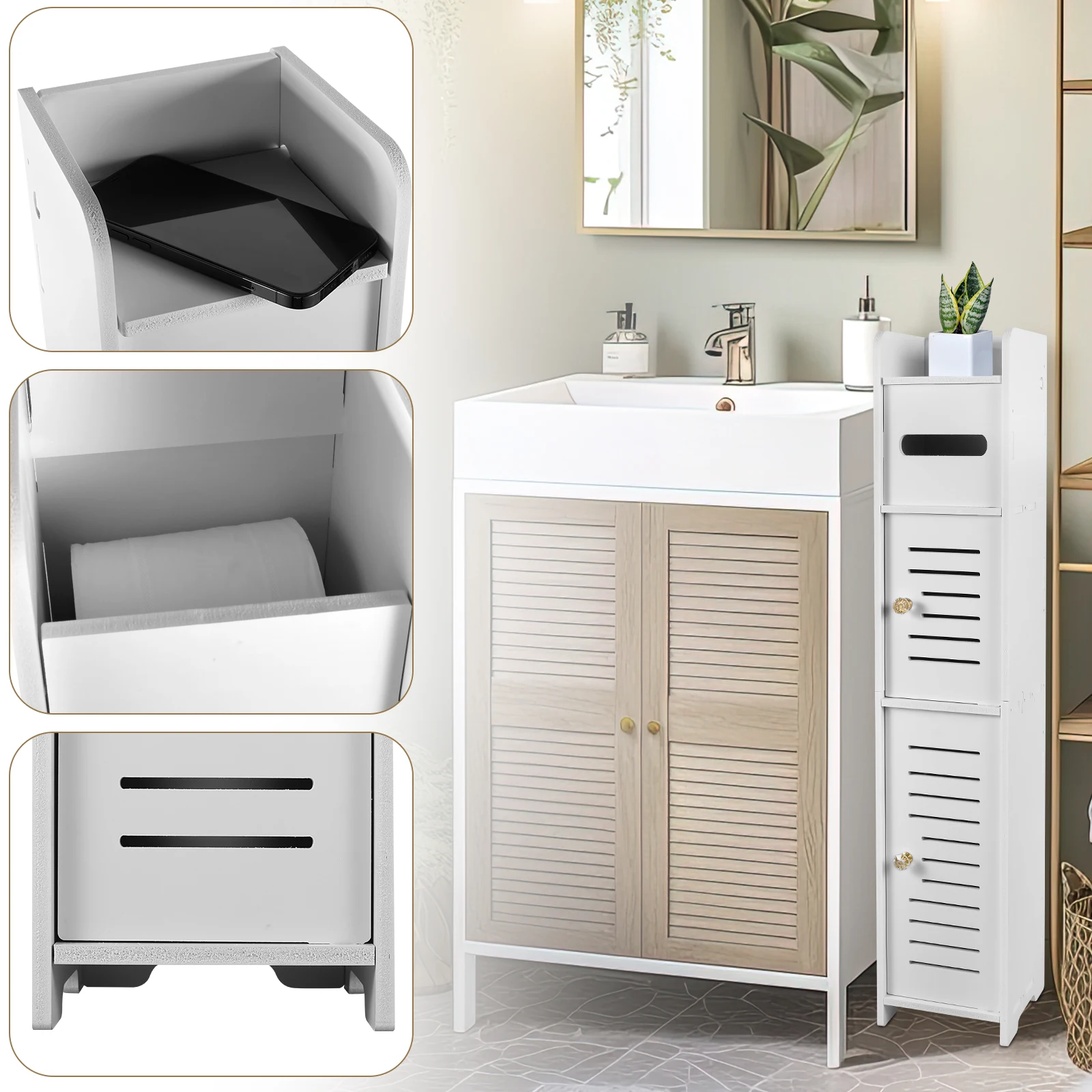 [Suitable Size] This bathroom storage cabinet measures 80 x 15 x 15 cm / 31.5 x 5.9 x 5.9 inches, the narrow body design is perfect for placing in the small space in your home, helping you to make reasonable use of the small space to store toilet paper rolls.