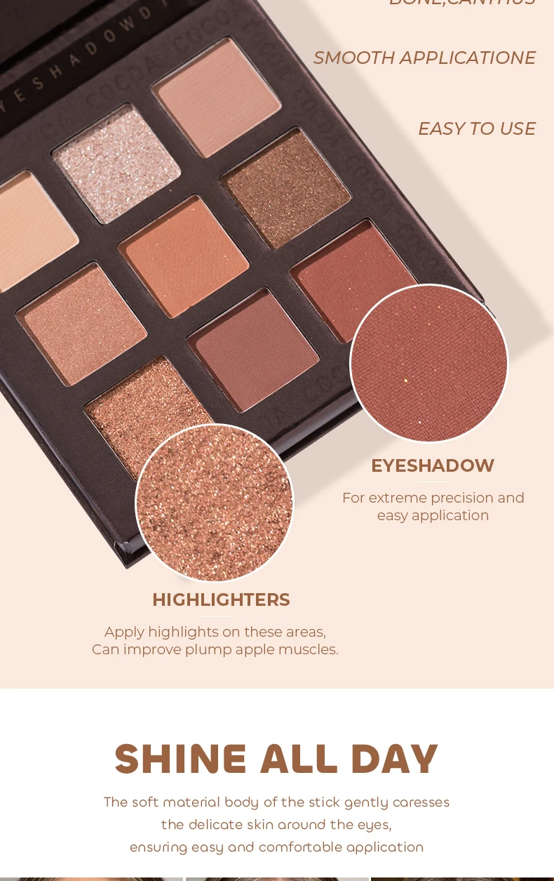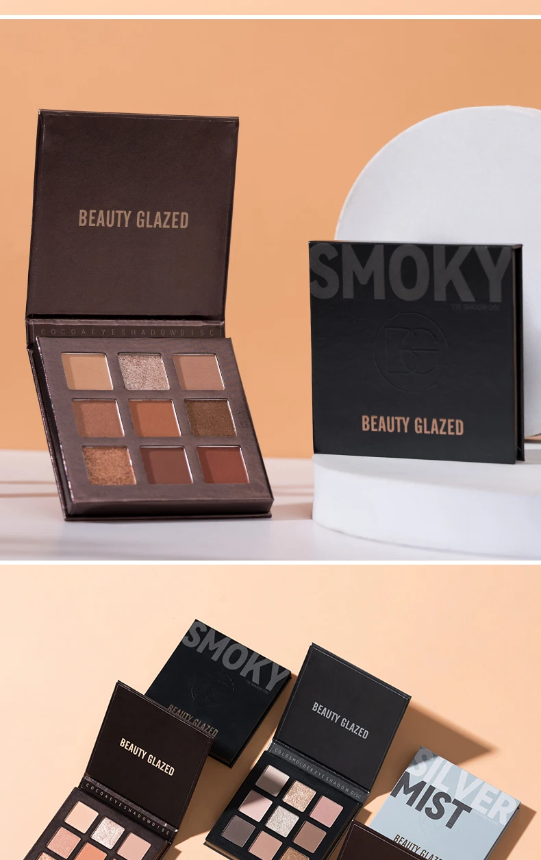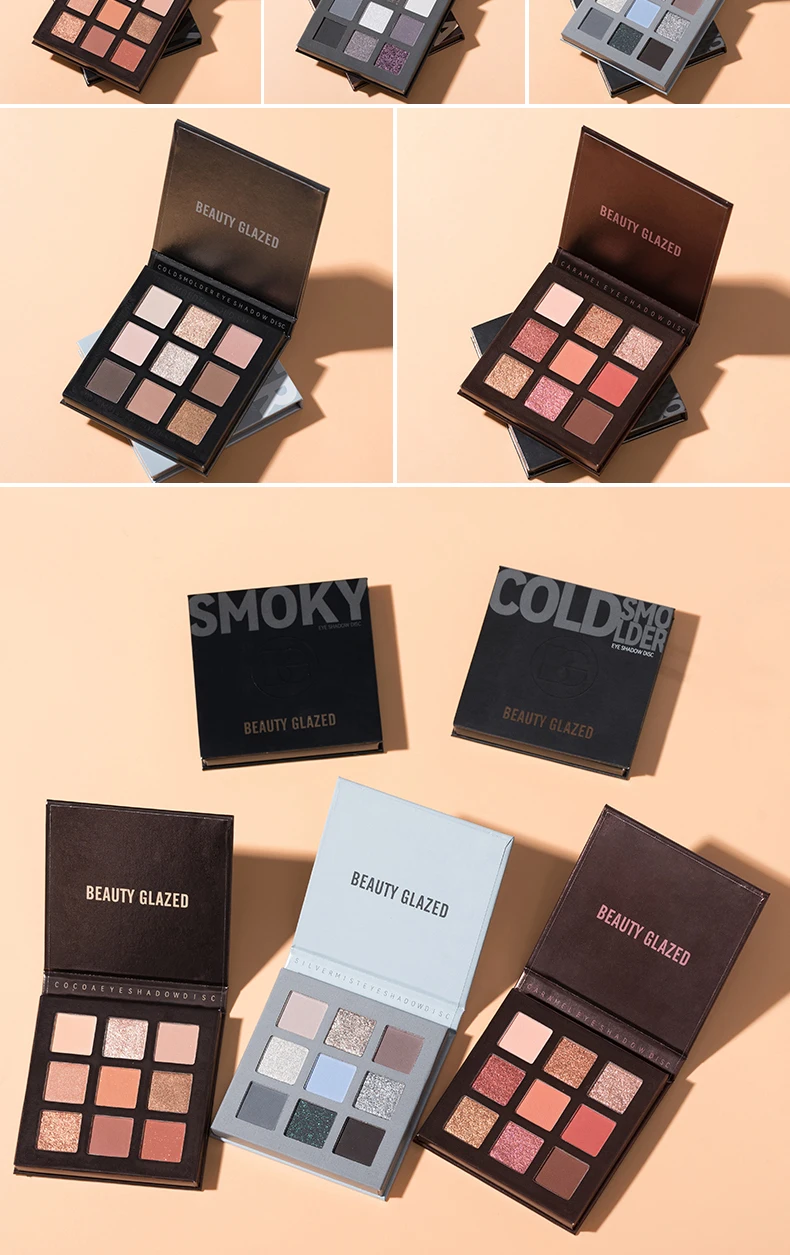 Beauty Glazed 9 Colors Eye Shadow Palette - Matte & Shimmer Pigmented Eyeshadow Discs Warm Earth Tones Makeup Powder for Eyes
