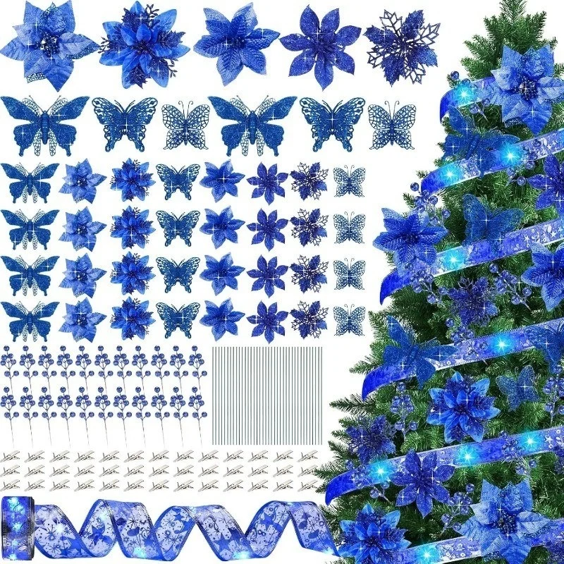 Berry Stems Christmas Tree Artificial Flowers Decorations Xmas Hanging Ball Snowflakes Ornament for Home Decor New Year Decor