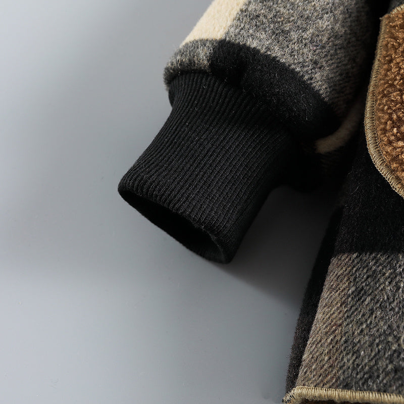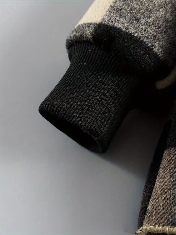 Boys' Long Sleeve Plaid Fleece-Lined Jacket with Button Front & Pockets - Cozy Fall/Winter Warmth, Casual Cardigan Collar, Brown/ Tartan Pattern, Machine Washable For Outdoor Play & Casual Attire, Winter Jacket For Boys, Fall