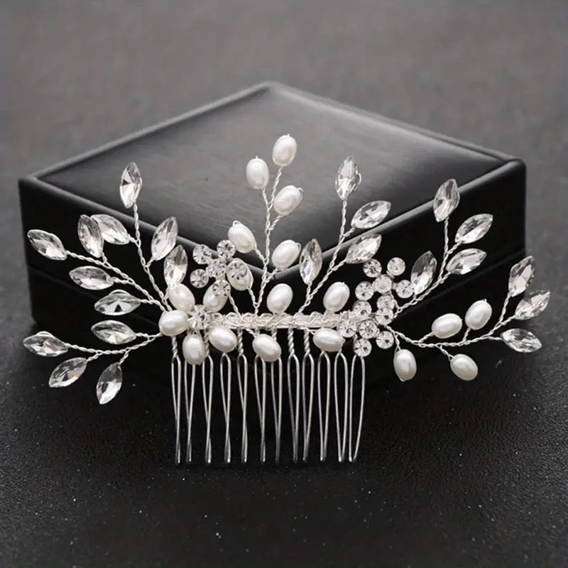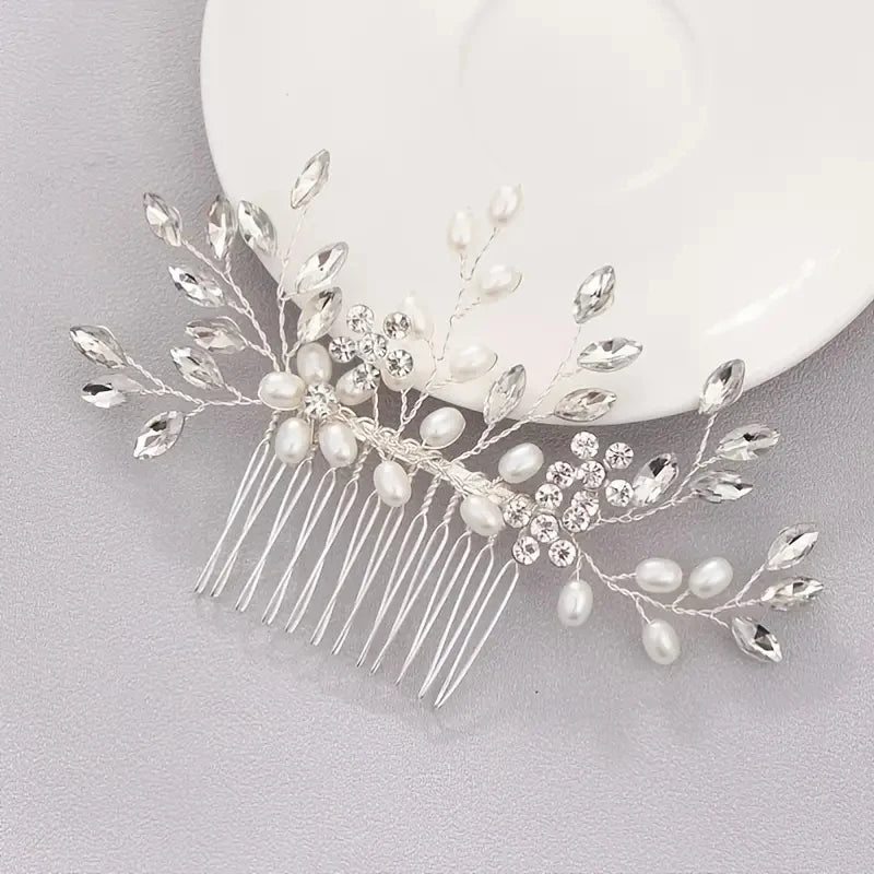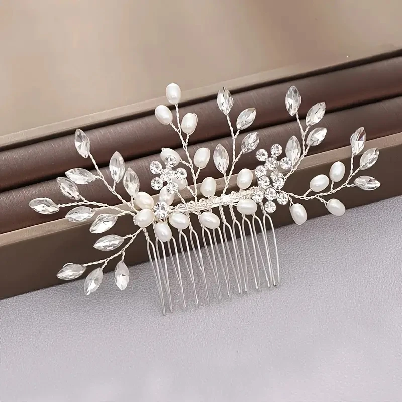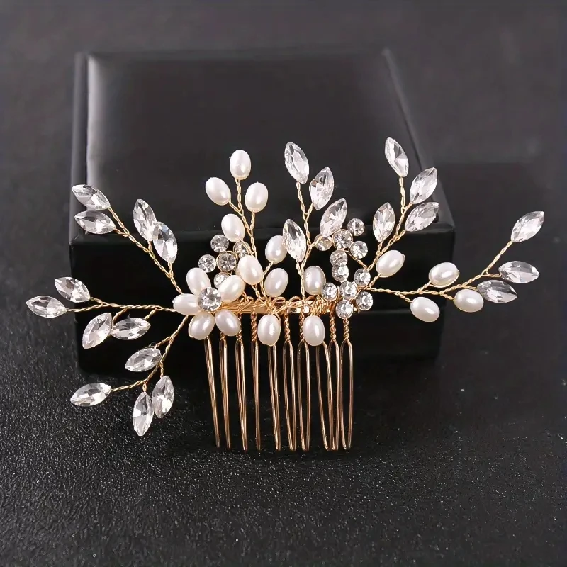 Bridal Hair Comb Wedding Headpiece Golden And Silvery Hair Comb Faux Pearl Hair Comb Rhinestone Crystal Hair Comb Wedding Hair A