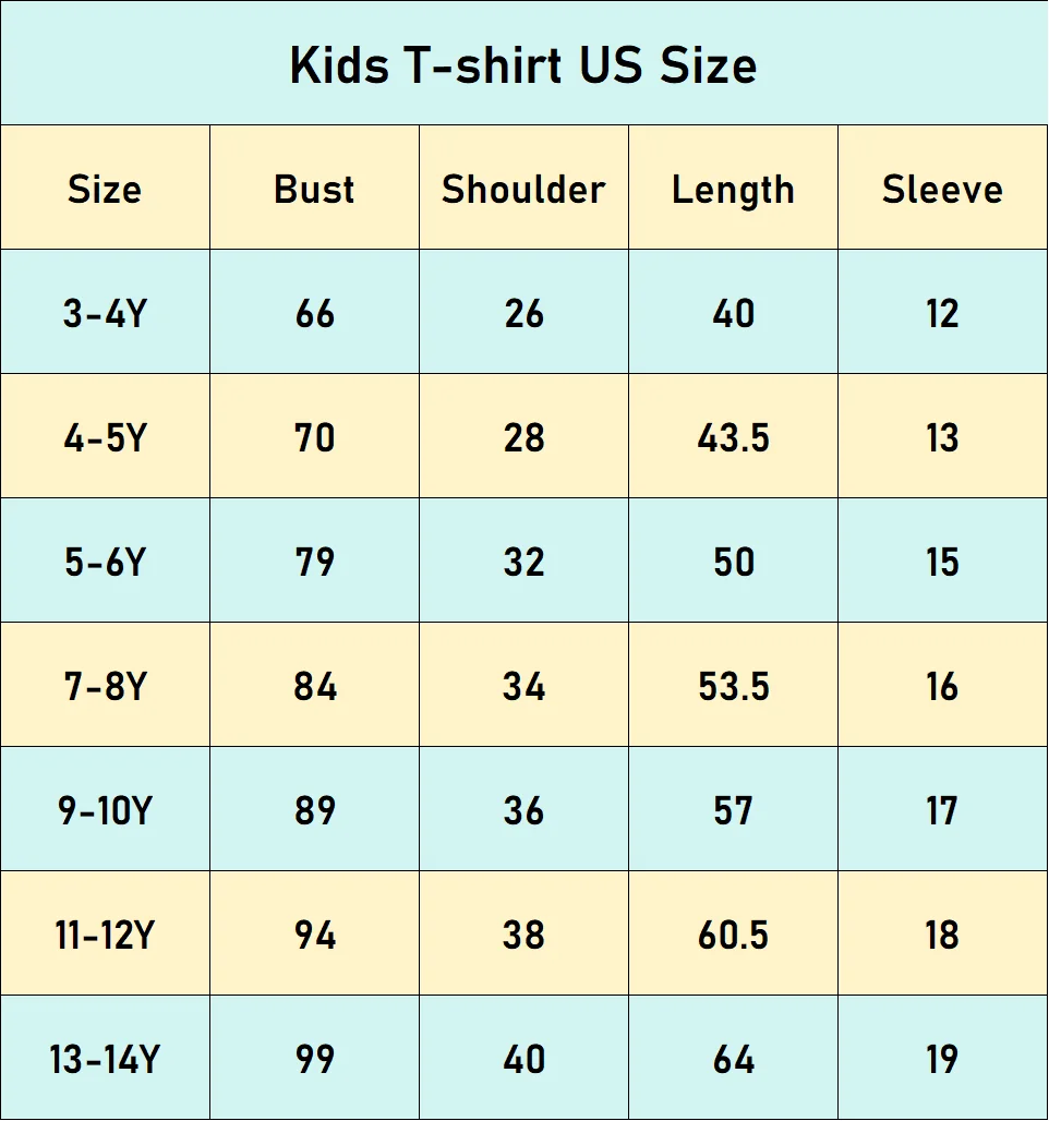 Kids T-shirt Size information