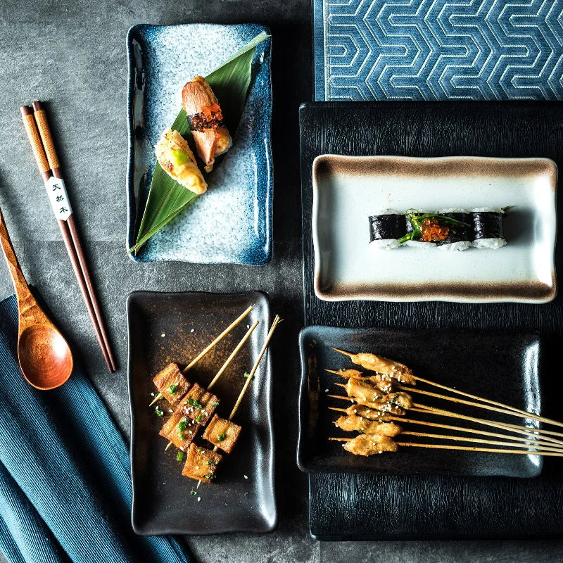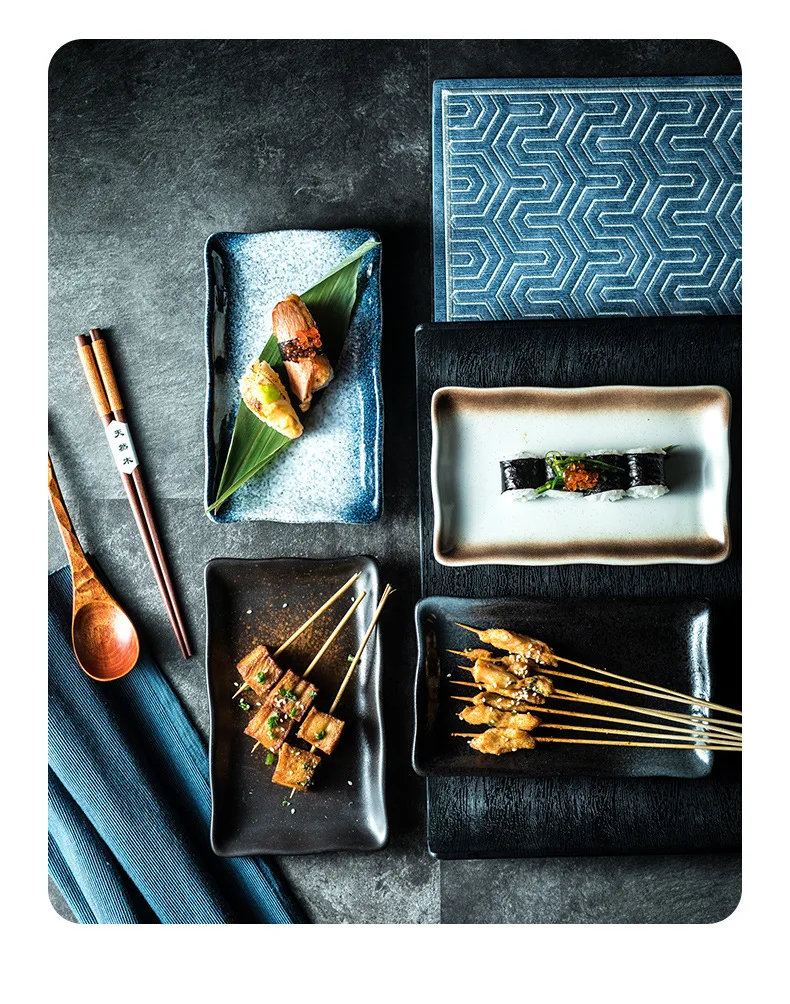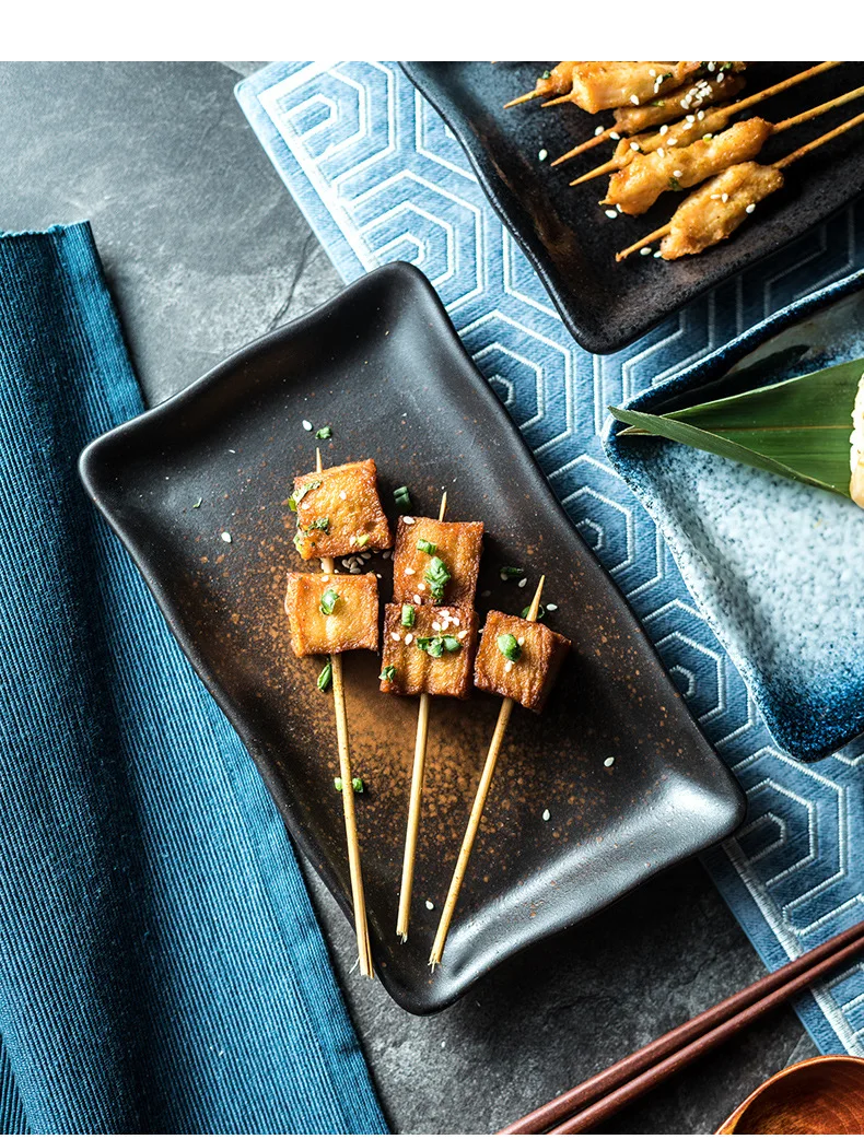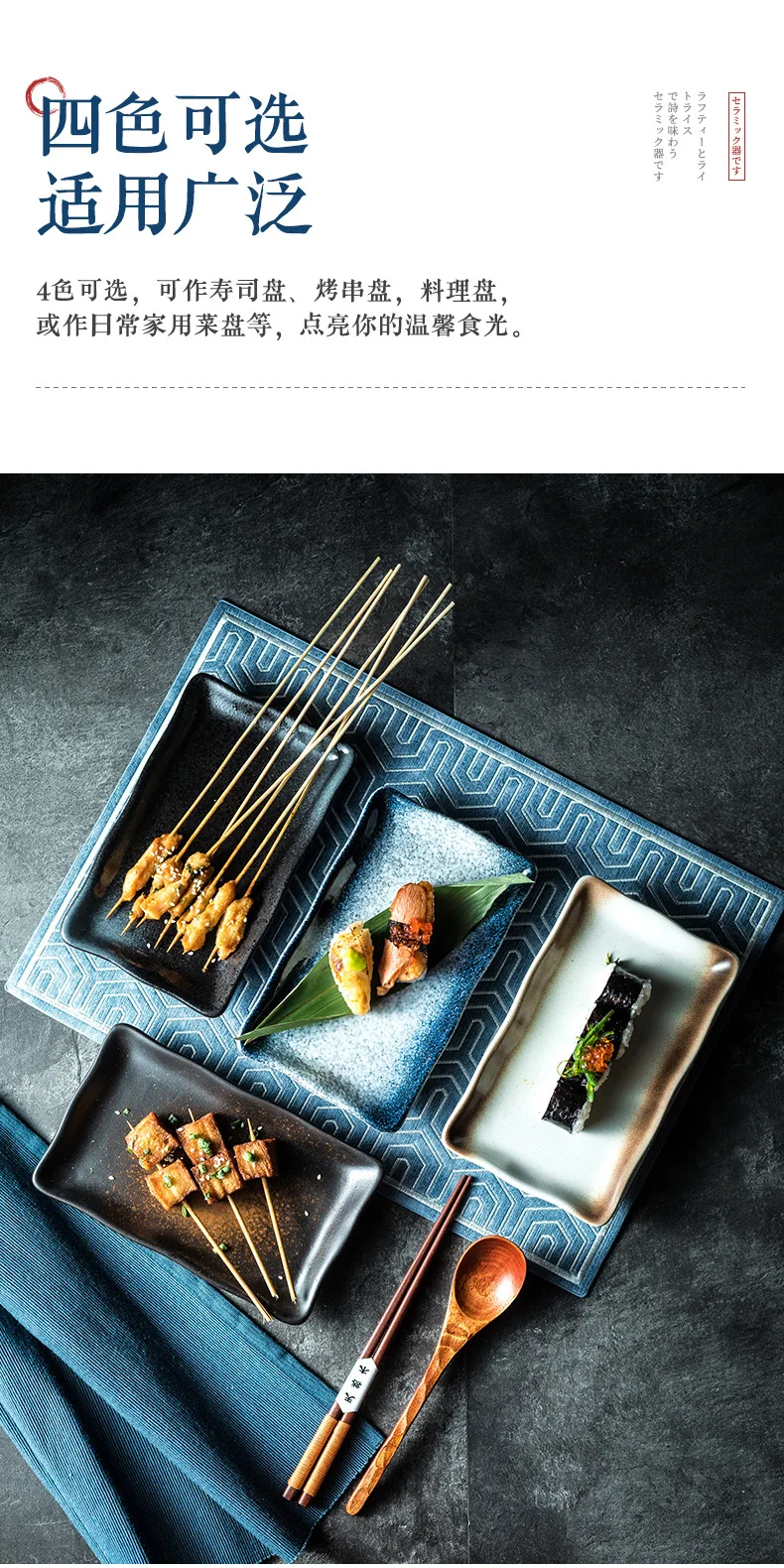Ceramic Barbecue Japanese Hotel Restaurant Home Snack Plate Rectangular Sushi Plate